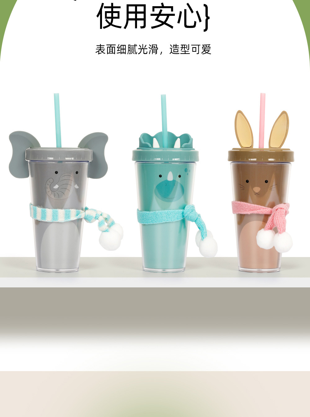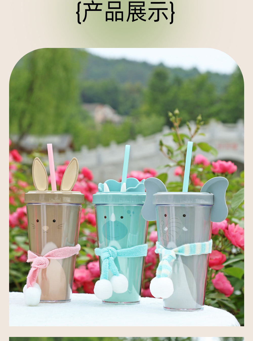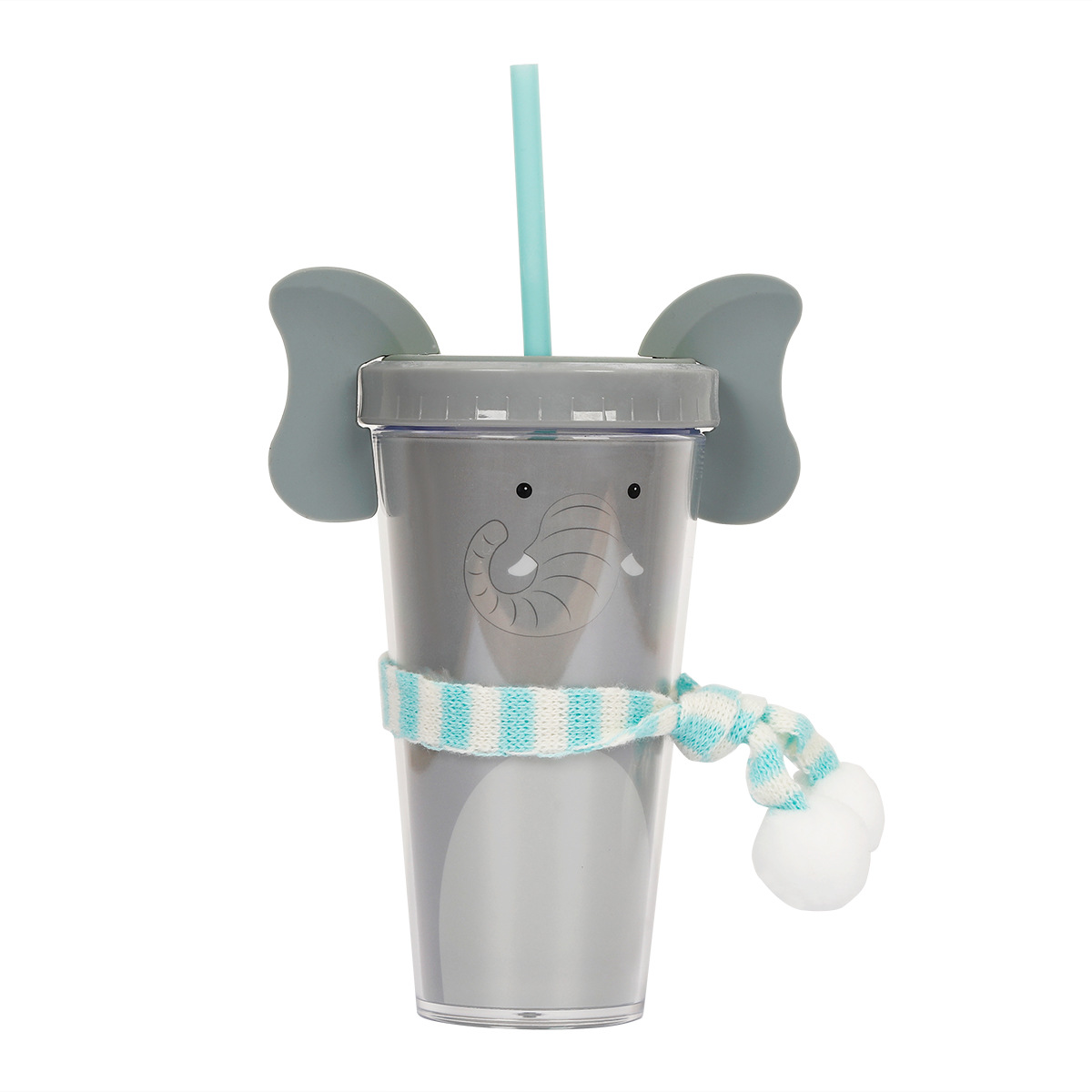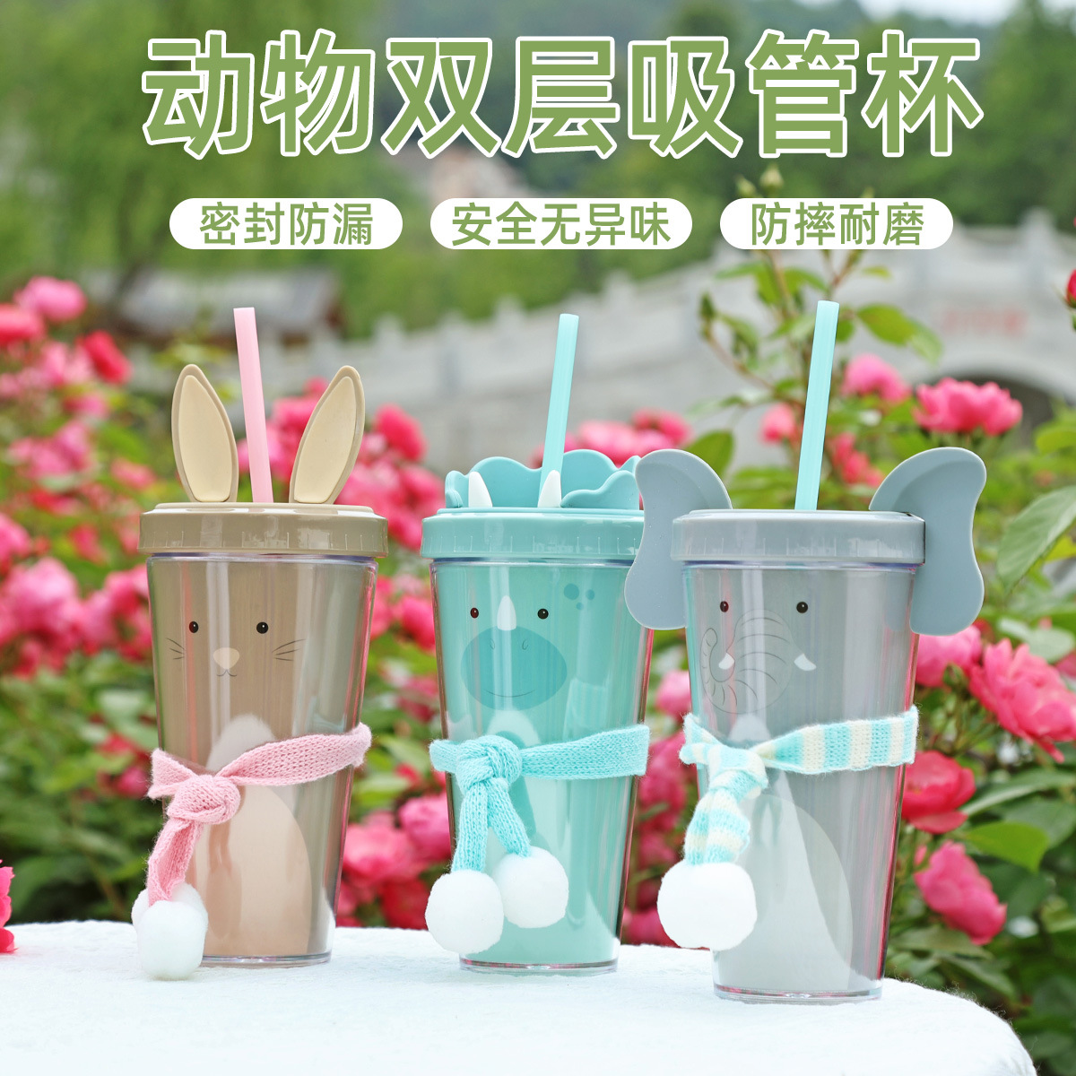30017  360ml动物卡通水杯双层塑料吸管杯创意塑料吸管杯