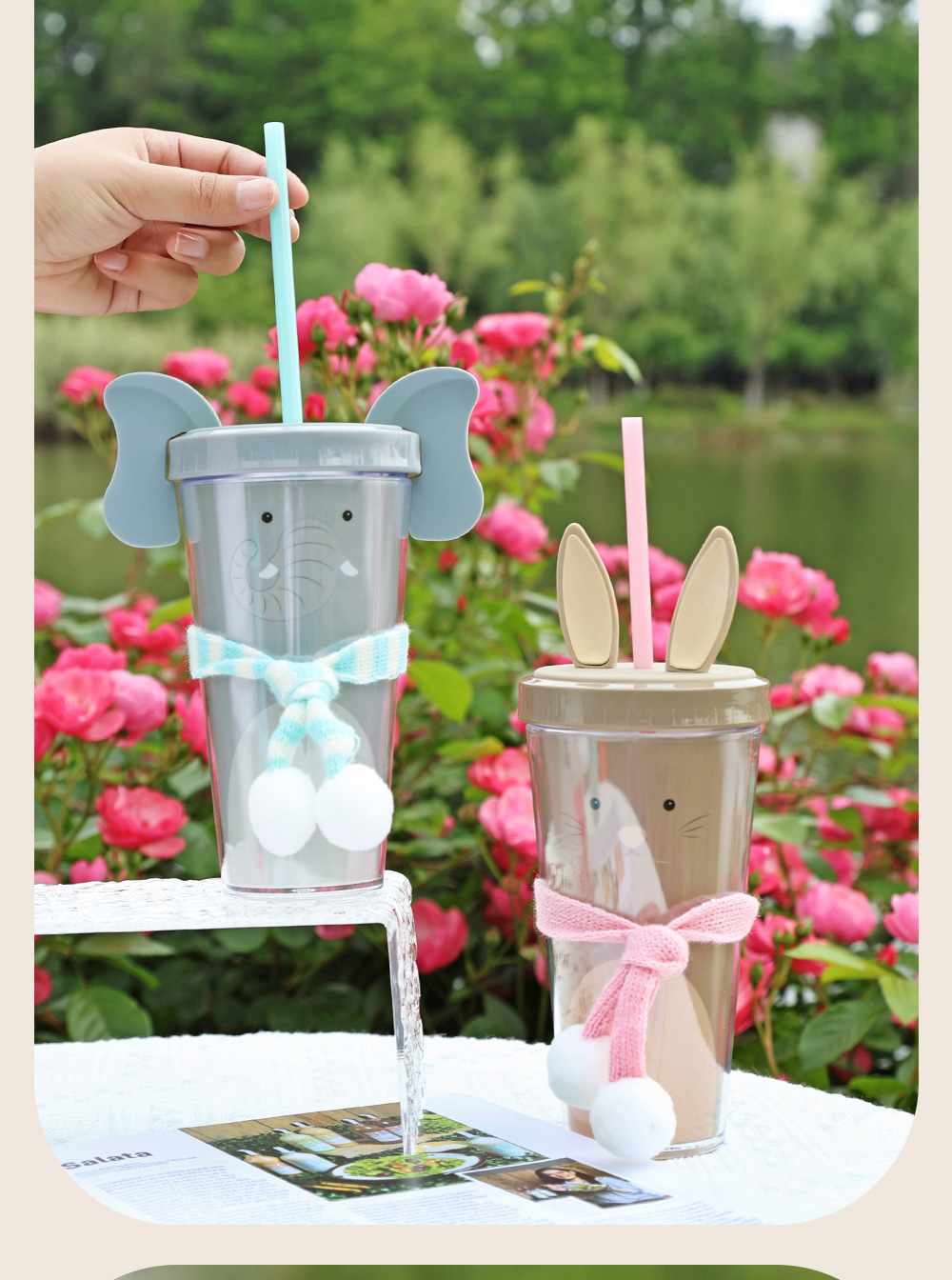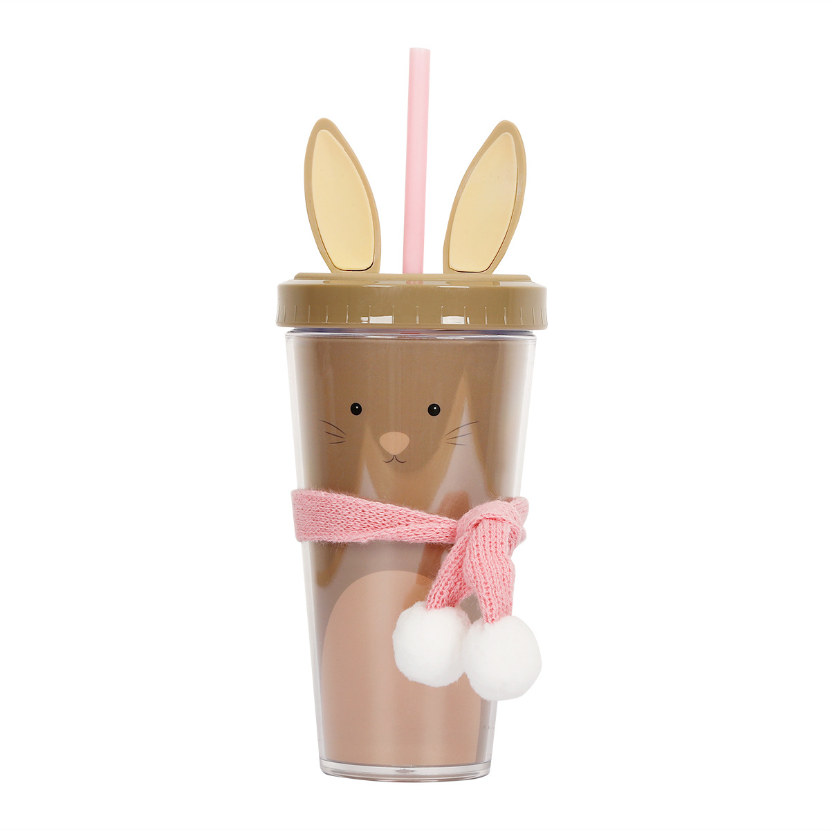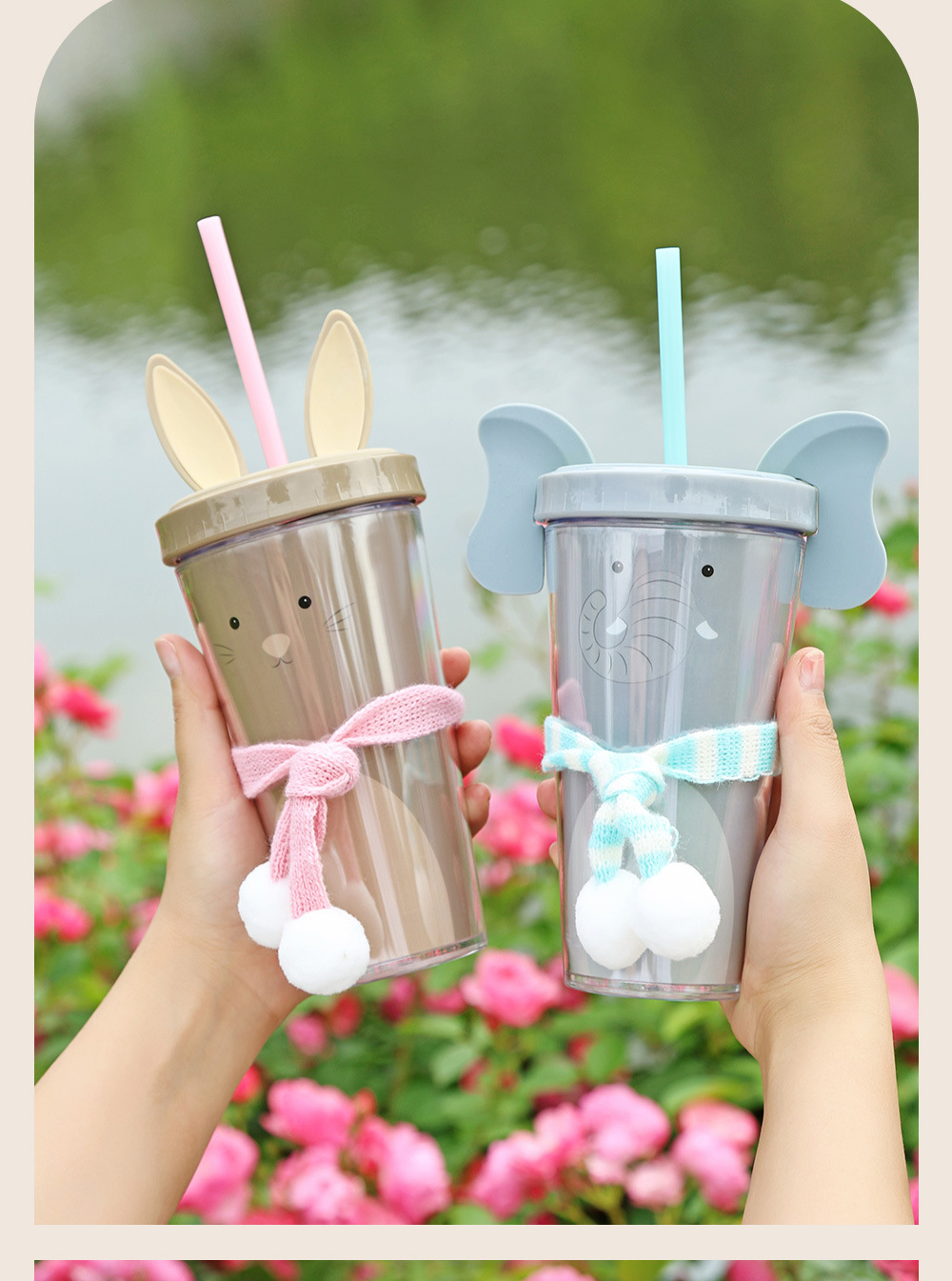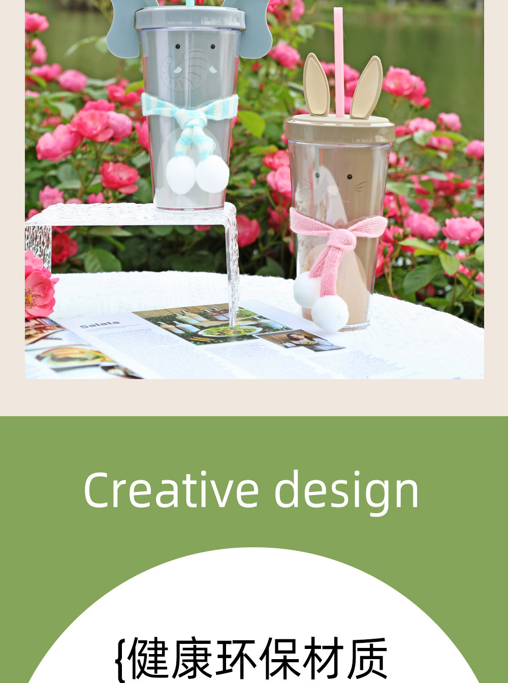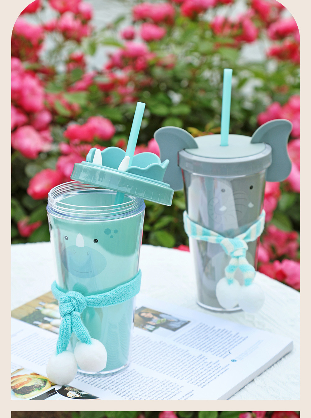 30017  360ml动物卡通水杯双层塑料吸管杯创意塑料吸管杯