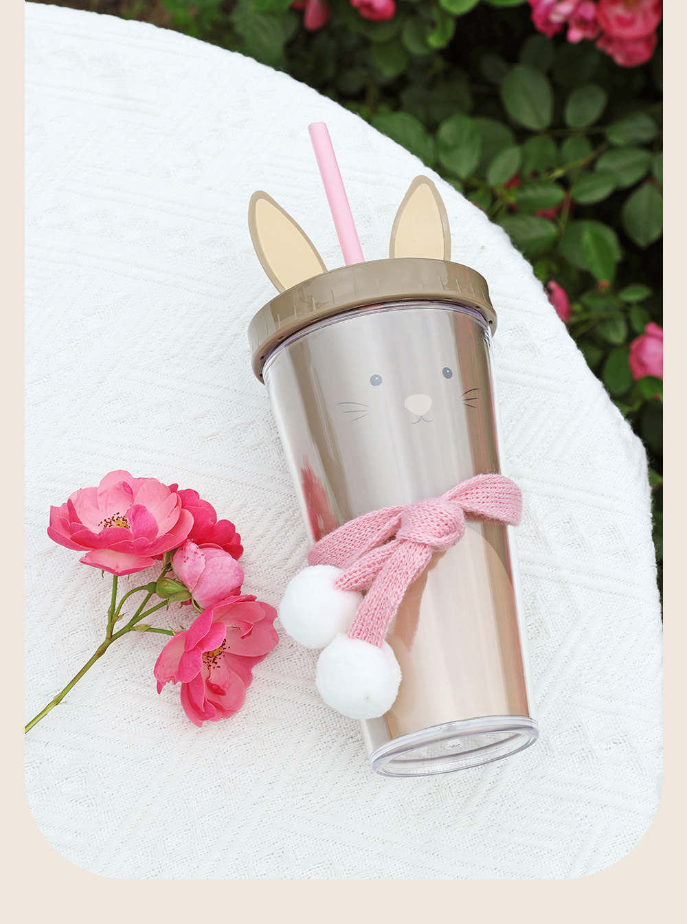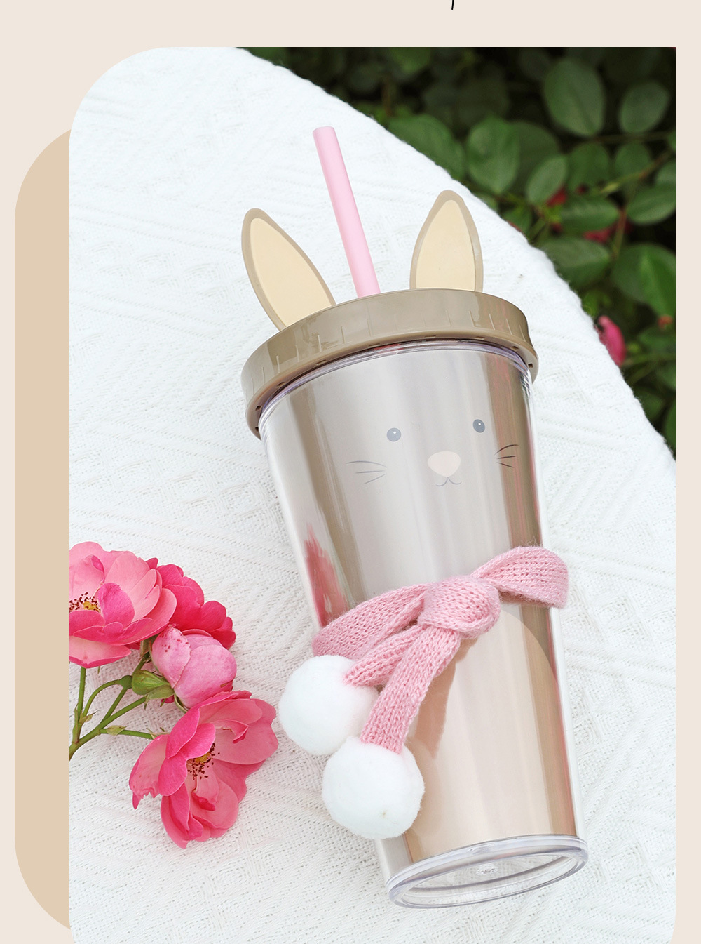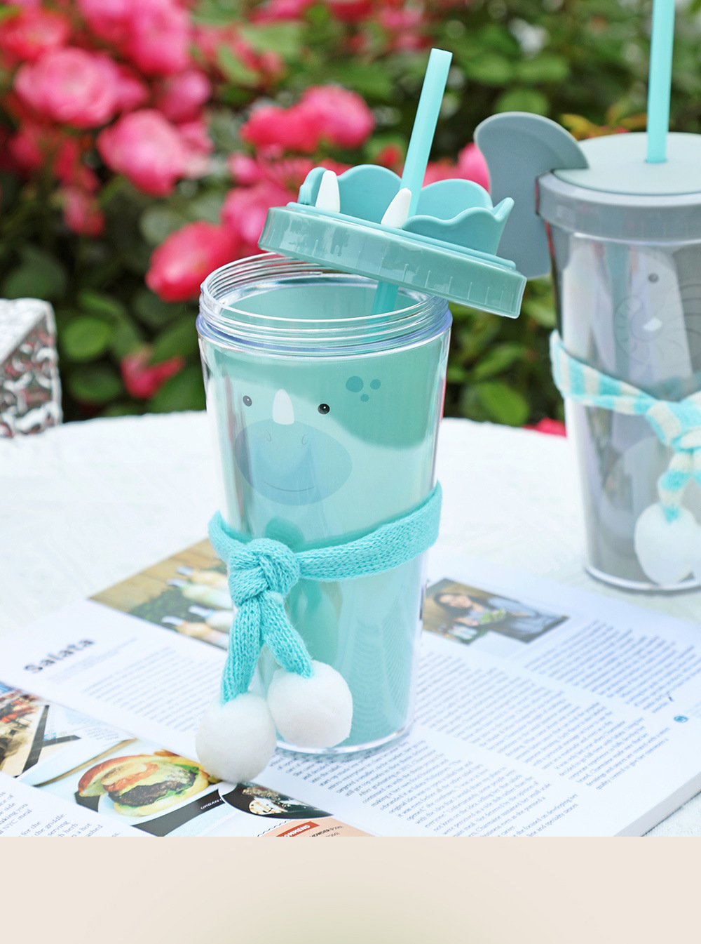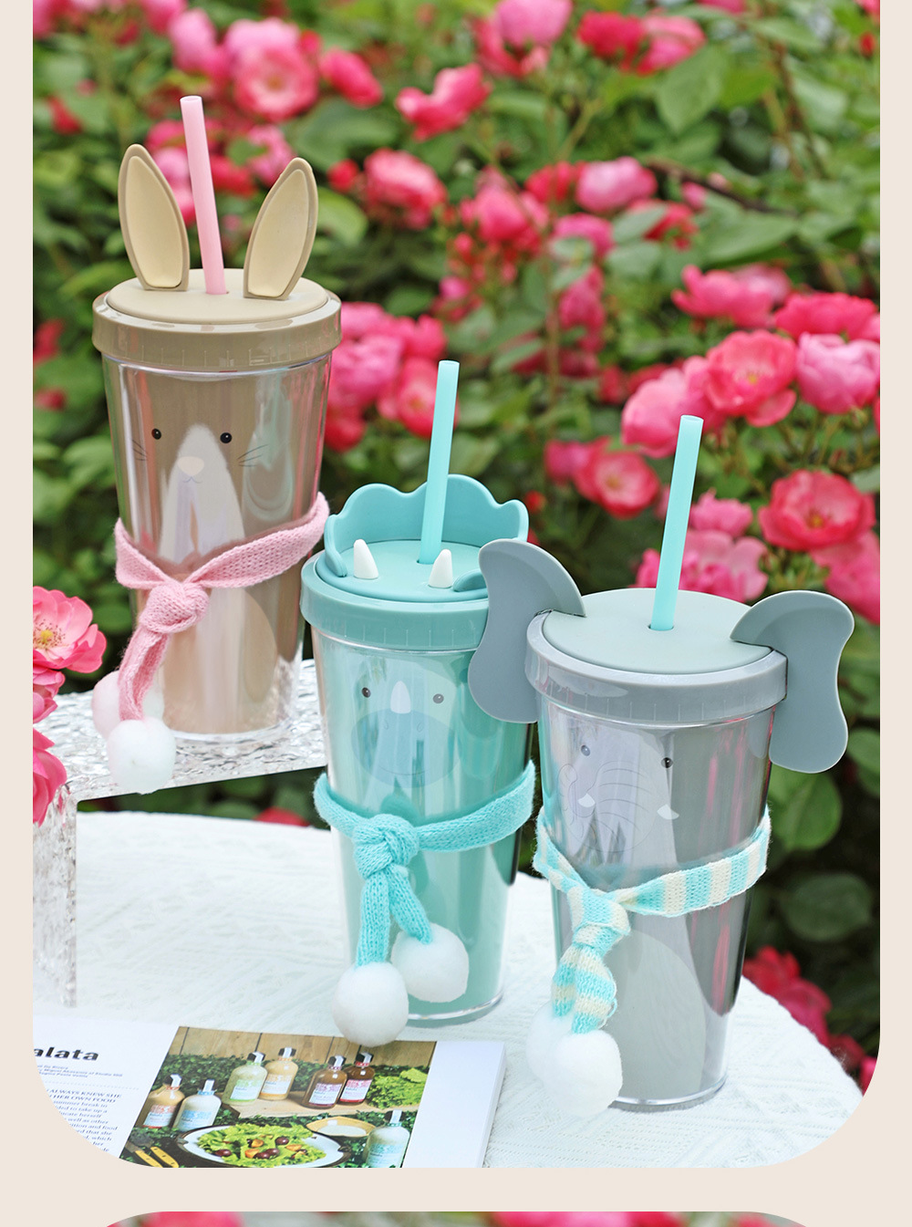 30017  360ml动物卡通水杯双层塑料吸管杯创意塑料吸管杯