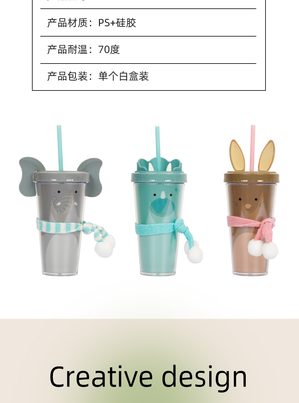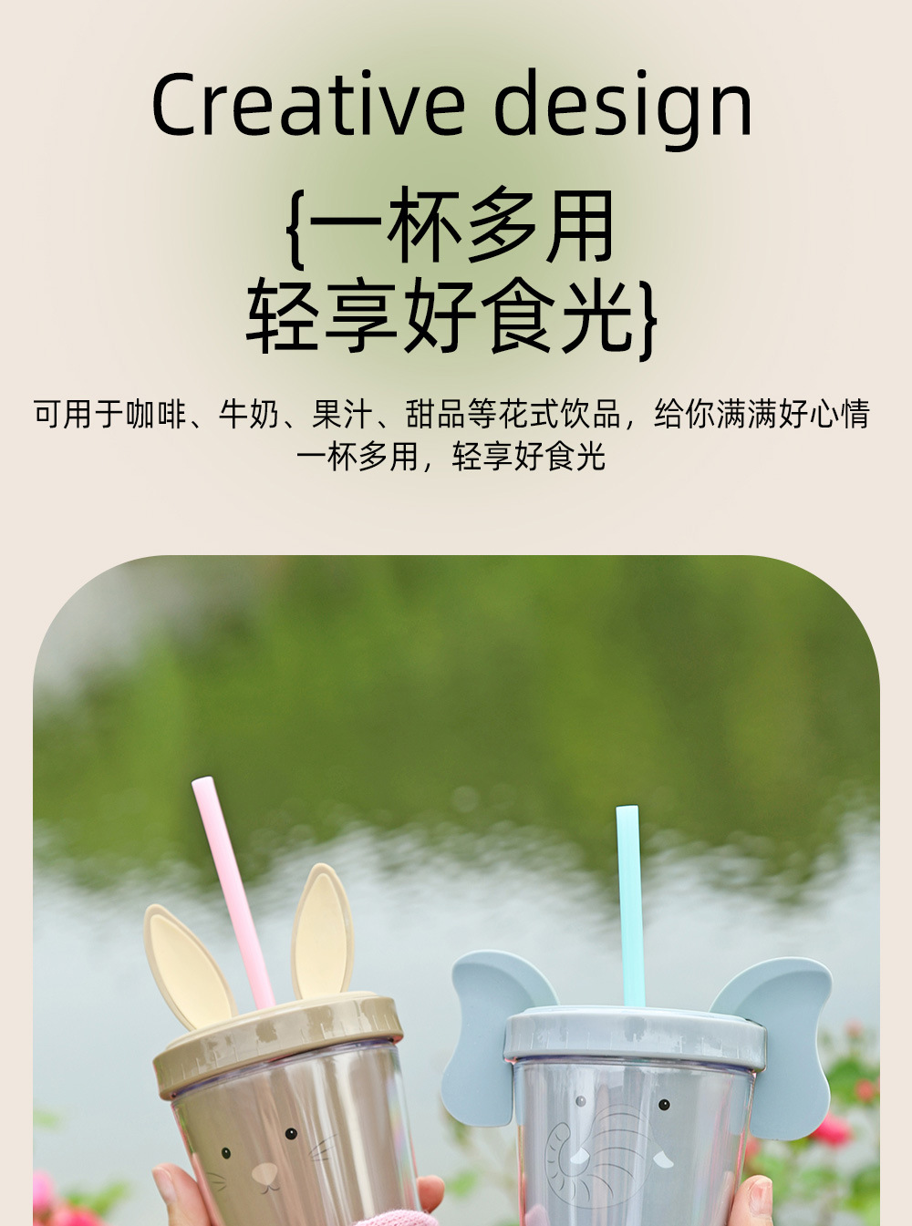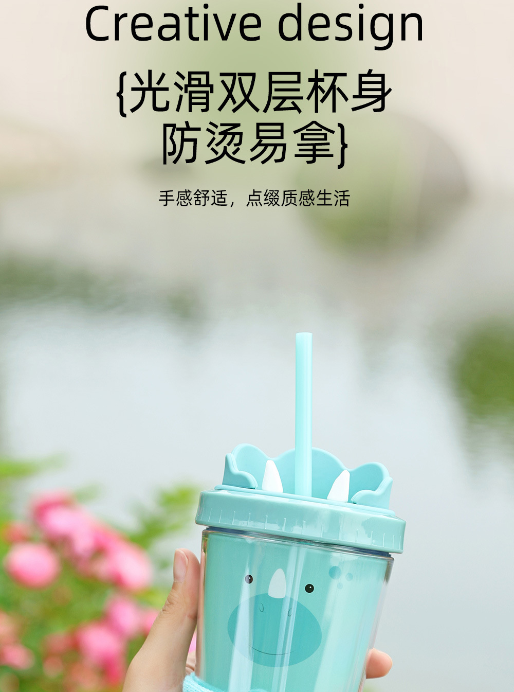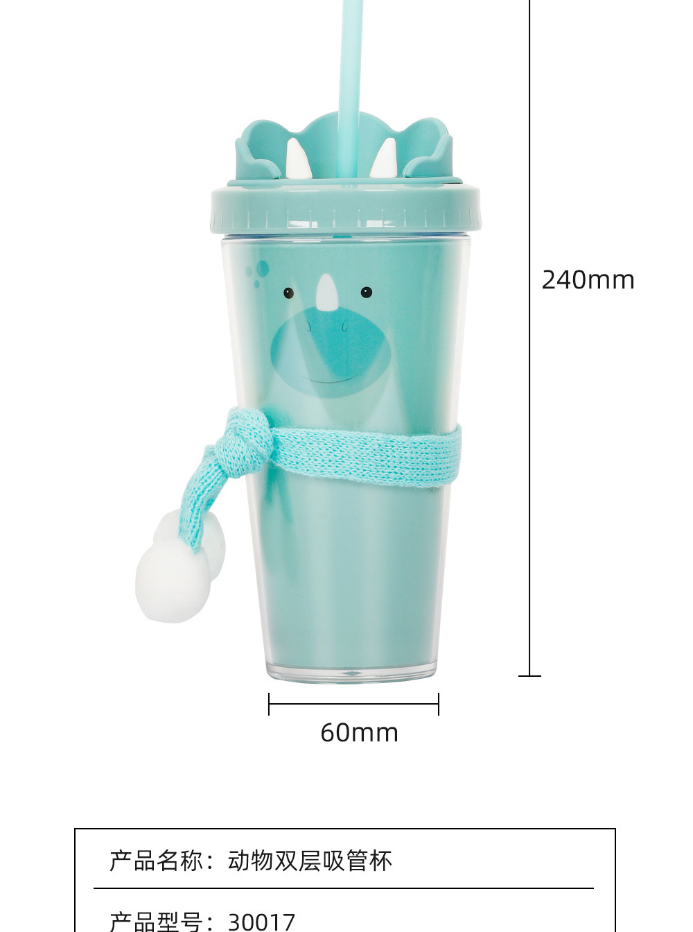 30017 360ml动物卡通水杯双层塑料吸管杯创意塑料吸管杯 English | 投诉