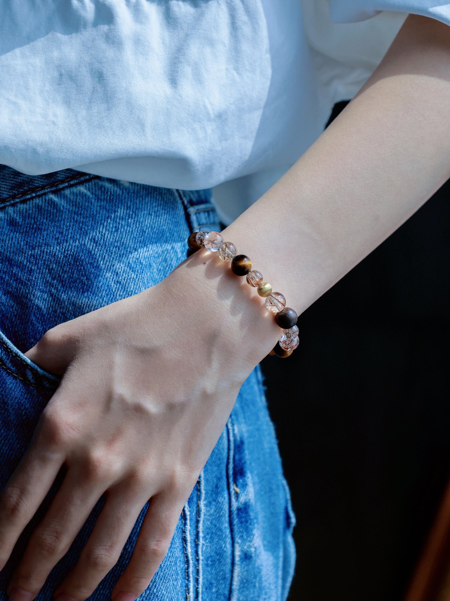 天然多宝水晶手链女款黑金超七虎眼石沉香手串设计款手链文玩批发 English | 投诉