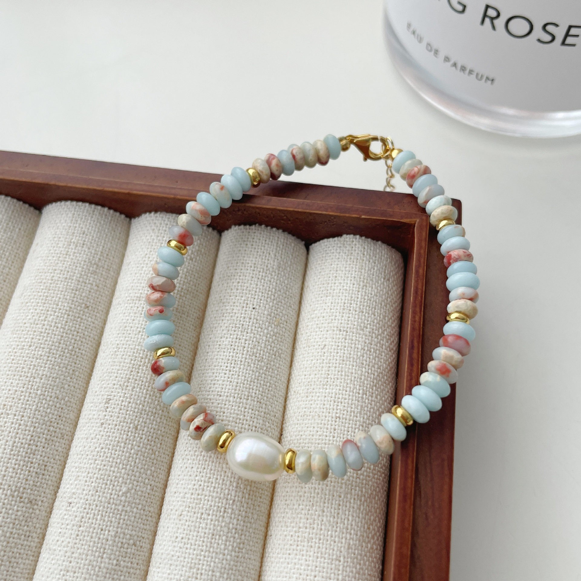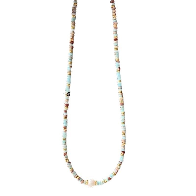 寿山石淡水珍珠项链蛇皮石算盘珠花纹拼接手链文艺复古锁骨链女