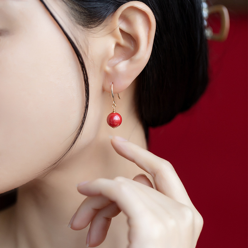 推荐高含量朱砂耳钉本命年大红色耳饰耳环复古风耳坠女批发 English | 投诉