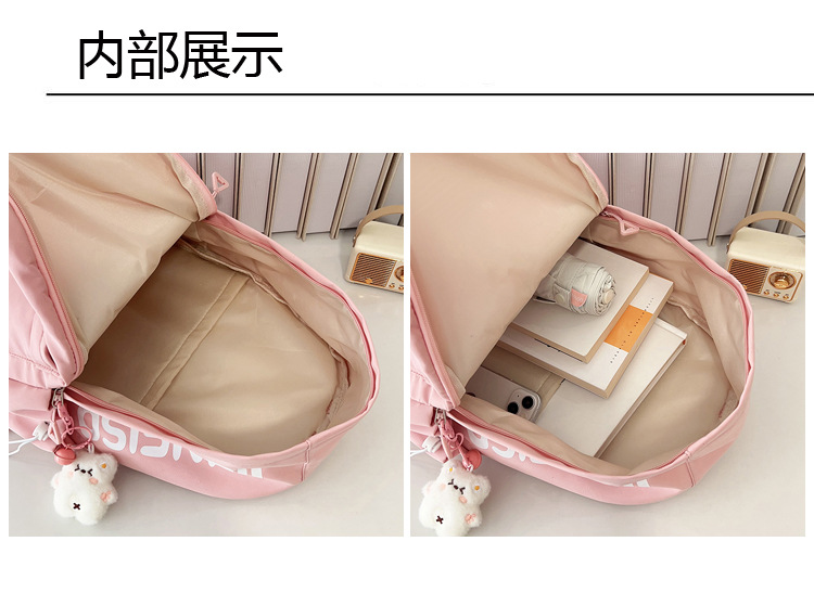 材质: 牛津布 功能: 透气,减负 里料质地: 涤纶 品牌: 其它 适用性别: 中性/男女均可 适用学龄: 初中 风格: 街头潮流 颜色: 黑色,米白色,粉色,黄色 货号: 24651 图案: 字母 流行元素: 车缝线 有可授权的自有品牌: 否 上市年份季节: 2024年夏季 适用场景: 学校教育 背负系统: 气垫背带