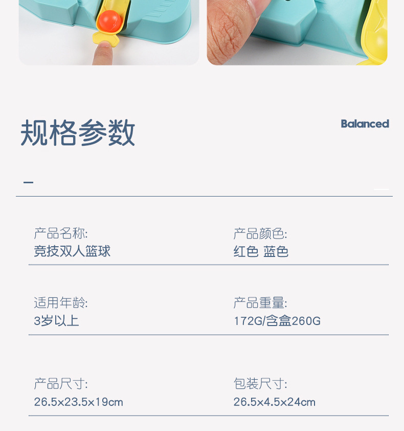 品牌: 邦力 分类: 桌上足球 材质: 塑料 能力培养: 情感,视觉,智力开发,爬行,动手动脑,抓 特色功能: 弹射对战 适用年龄: 少年(7-14岁) 是否专供外贸: 是(本商品仅供外贸用途,可能不符合境内产 适用场合: 外销 原产地: 澄海 包装: 彩盒 货号: 1808 是否有导购视频: 是 颜色: 双人弹射篮球场配6球(红盒),红色双人篮 主要下游平台: ebay,亚马逊,wish,速卖通,独立 主要销售地区: 非洲,欧洲,南美,东南亚,北美,东北亚, 有可授权的自有品牌: 否 是否跨境出口专供货源: 是 重量: 1.5 kg/盒
