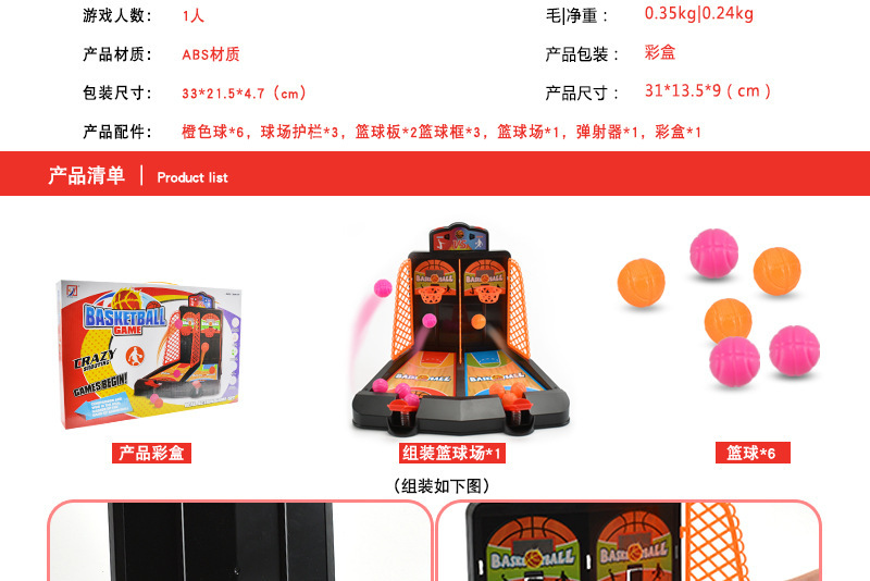 外贸玩具迷你投篮机双人弹射弹珠桌面游戏篮球对战桌游机亲子互动 English | 投诉