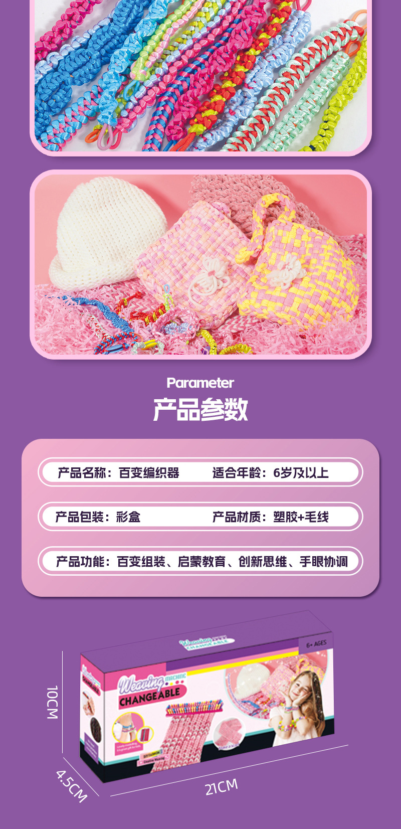 材质: 其它 品牌: 其他 是否能够DIY: 是 是否电动: 否 是否多功能: 否 适用年龄: 少年(7-14岁) 产地: 澄海 货号: CT860 产品类别: 手工编织玩具 规格: 见详情 包装方式: 彩盒 加工定制: 是 加工方式: LOGO贴牌 是否外贸: 是 外贸类型: 出口 是否有动漫形象: 否 专利及著作权: 实用新型 专利号或版权登记证号: 否 专利及著作权申请时间: 否 是否有导购视频: 否 重量: 2.0 kg/盒