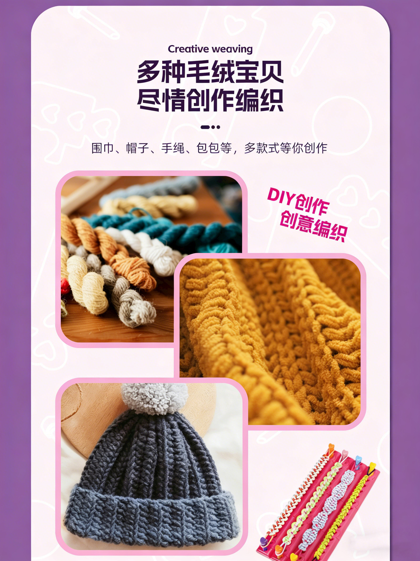 跨境女孩DIY毛线编织器手工织围巾手绳包包diy材料包工具套装玩具 English | 投诉