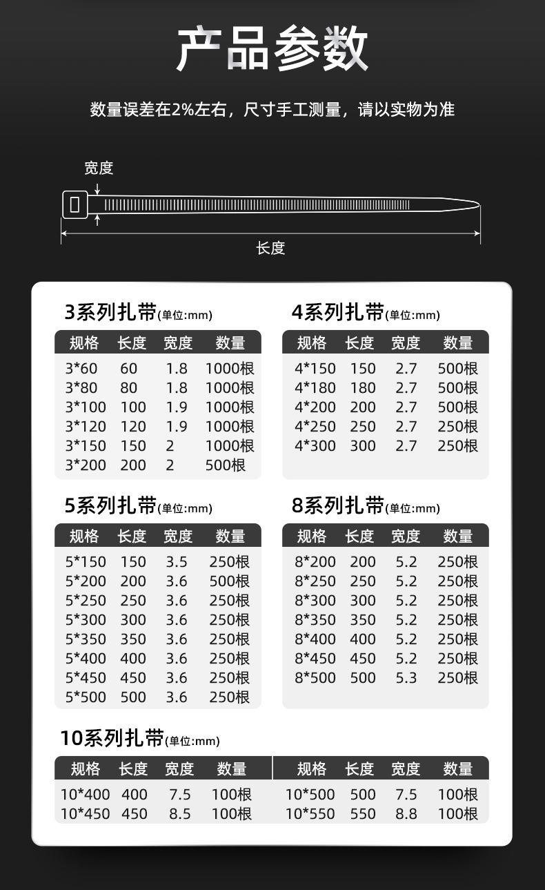 | 白色;8*200国标宽7.6mm长20厘米 | ¥542 | 9850包可售 |