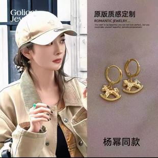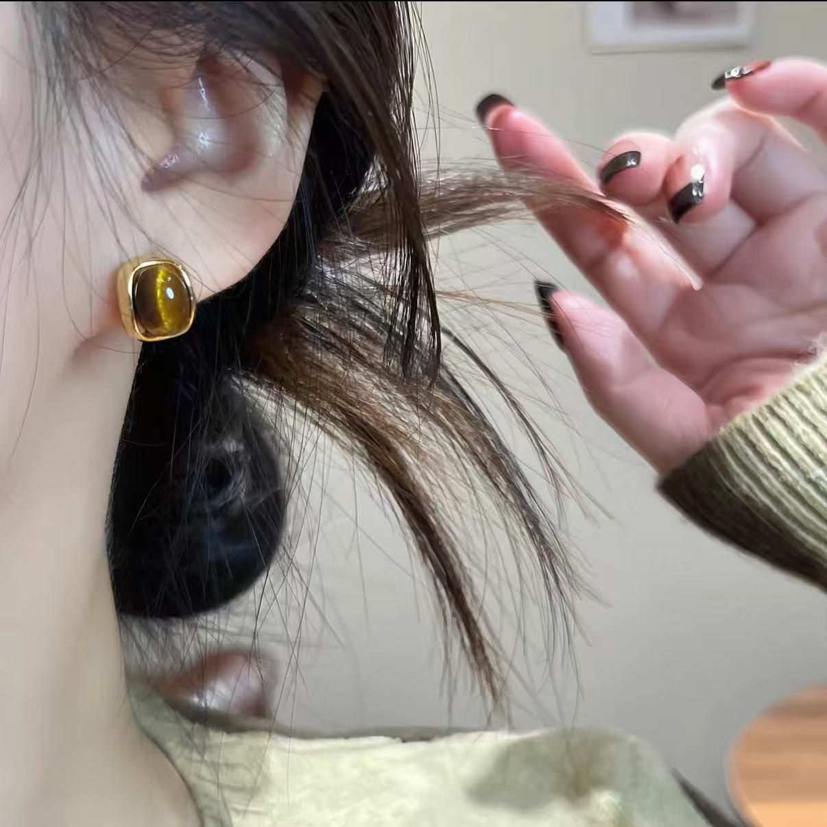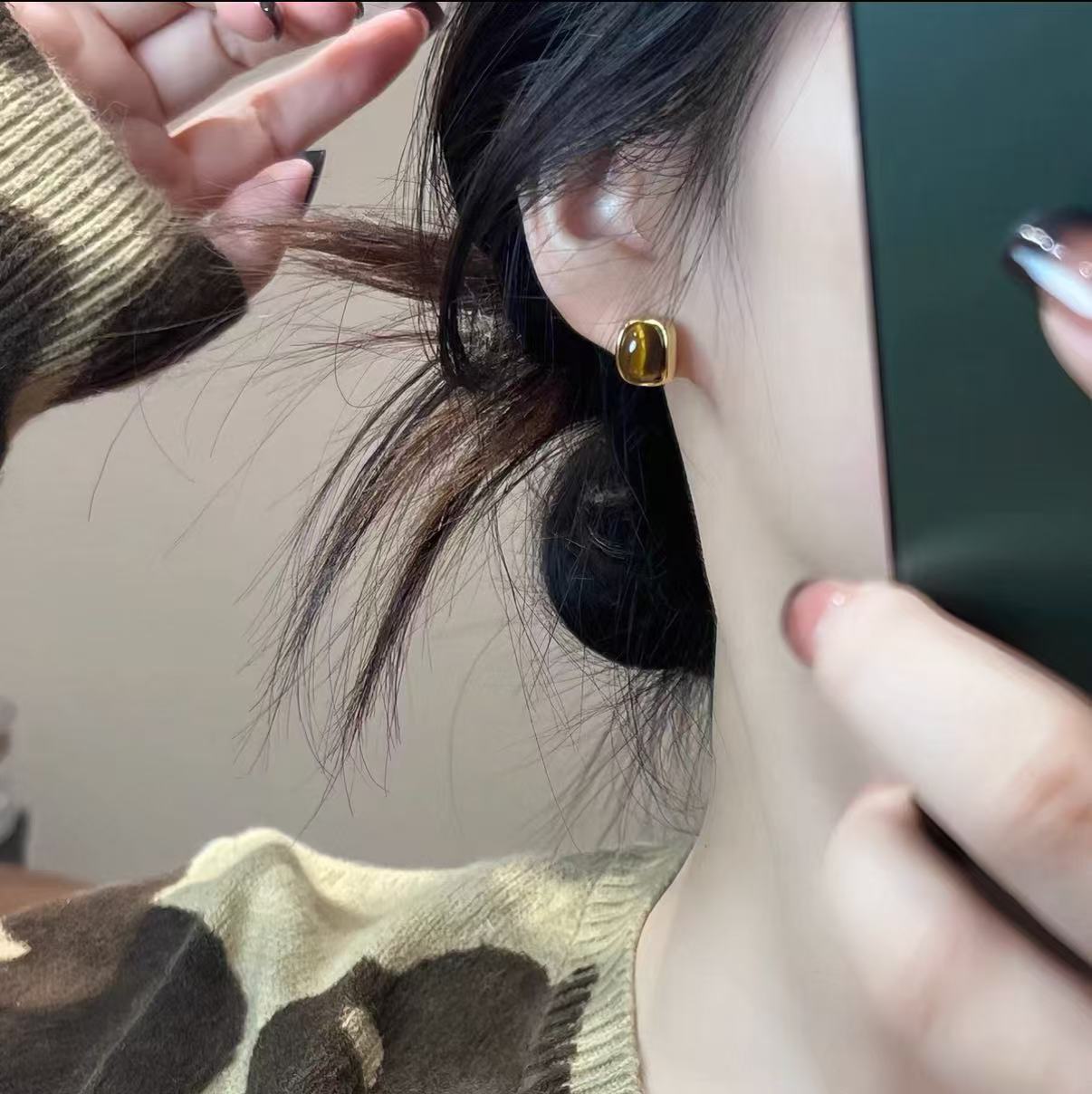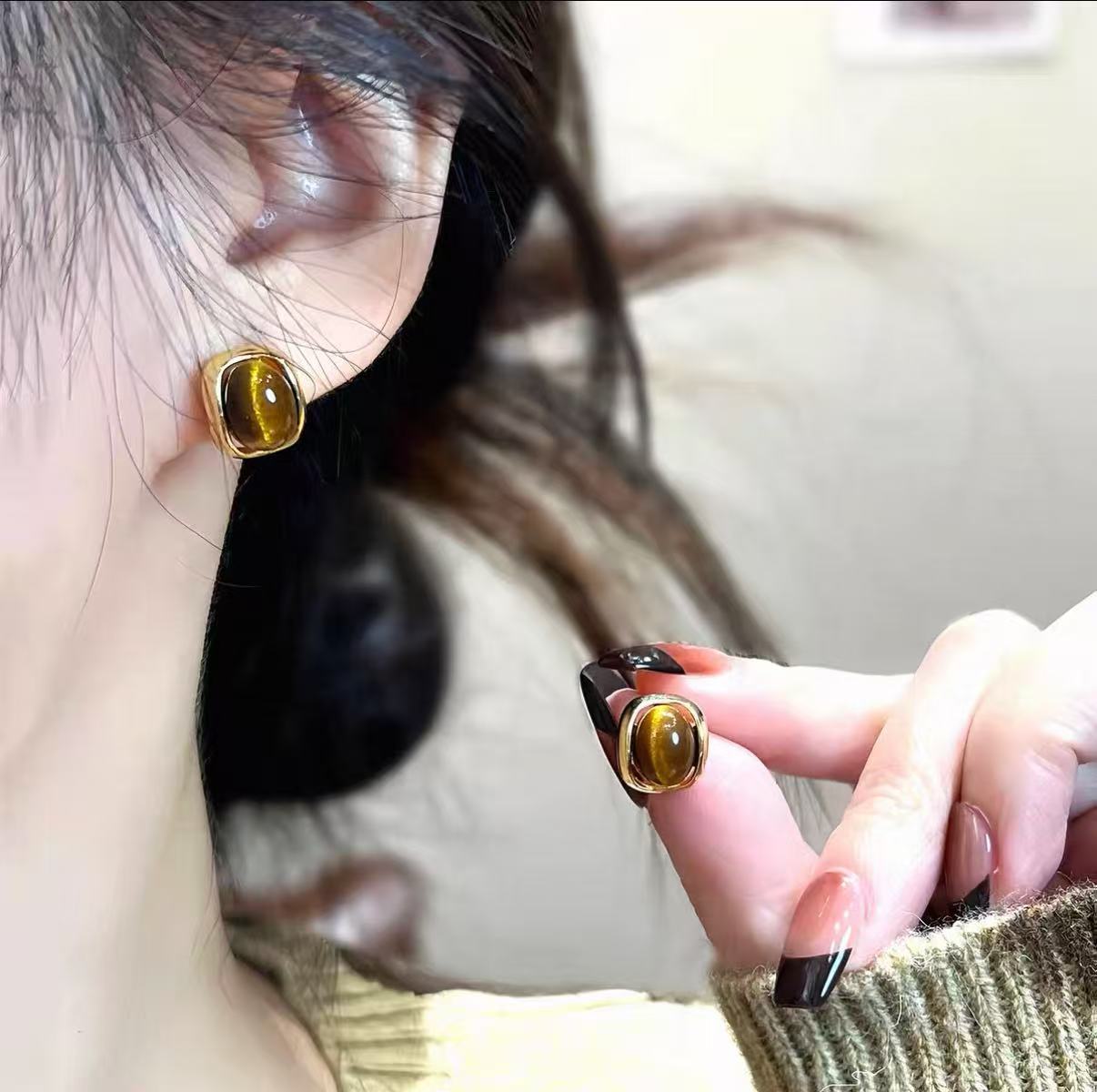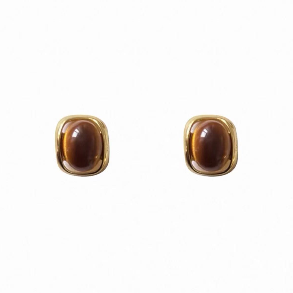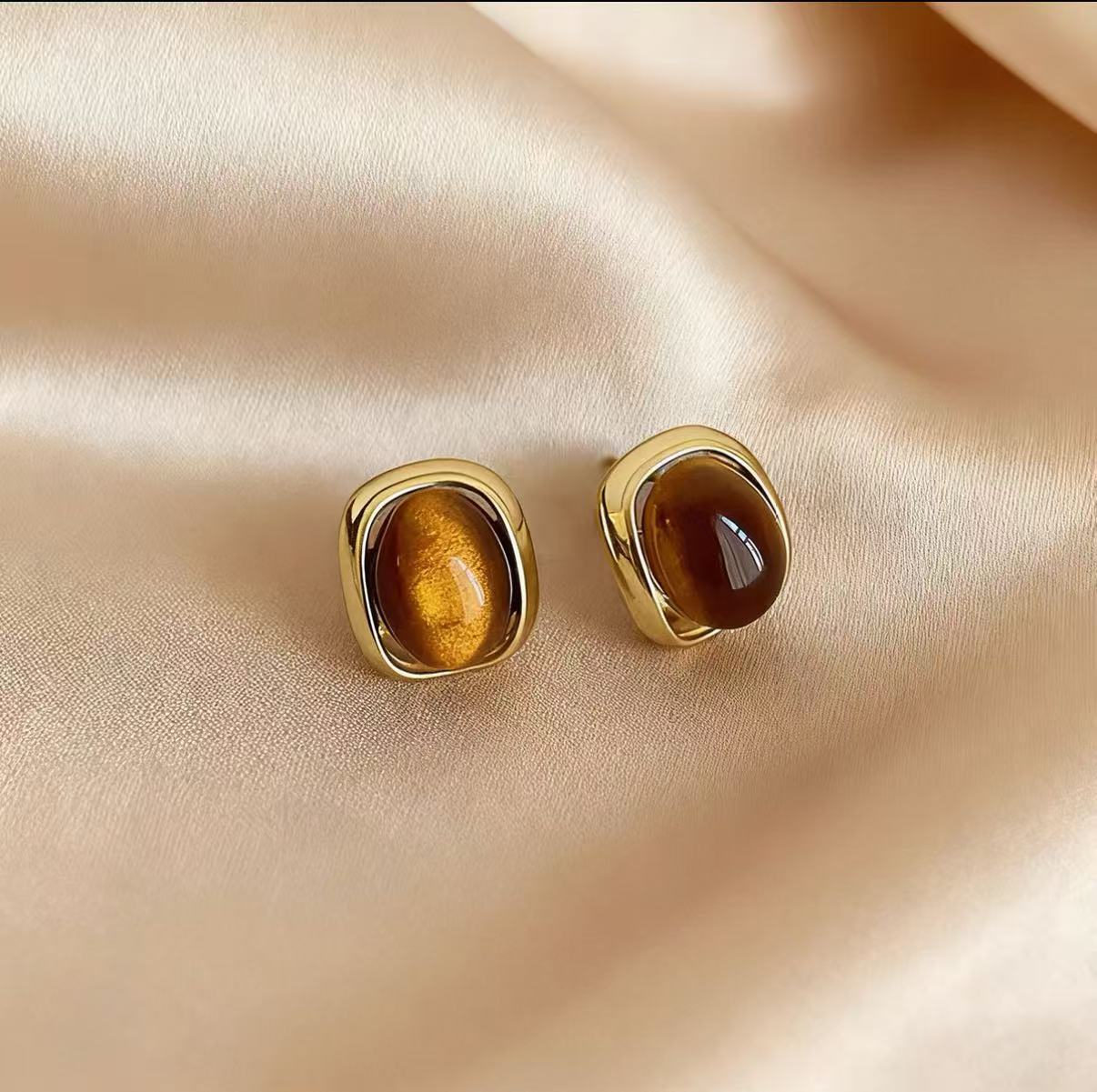 新款焦糖美拉德色系几何虎眼石耳钉简约复古设计百搭独特气质女