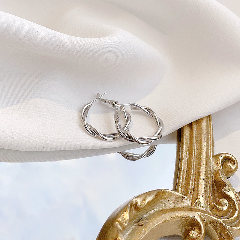 麻花圈圈耳环气质高级感网红耳圈女个性2025年新款冷淡风网红耳饰 投诉