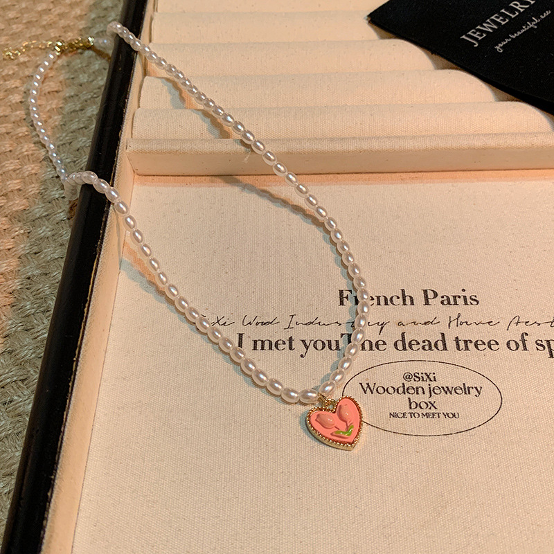 韩国新款小众珍珠项链女百搭拼接爱心锁骨链轻奢气质串珠配饰批发 投诉