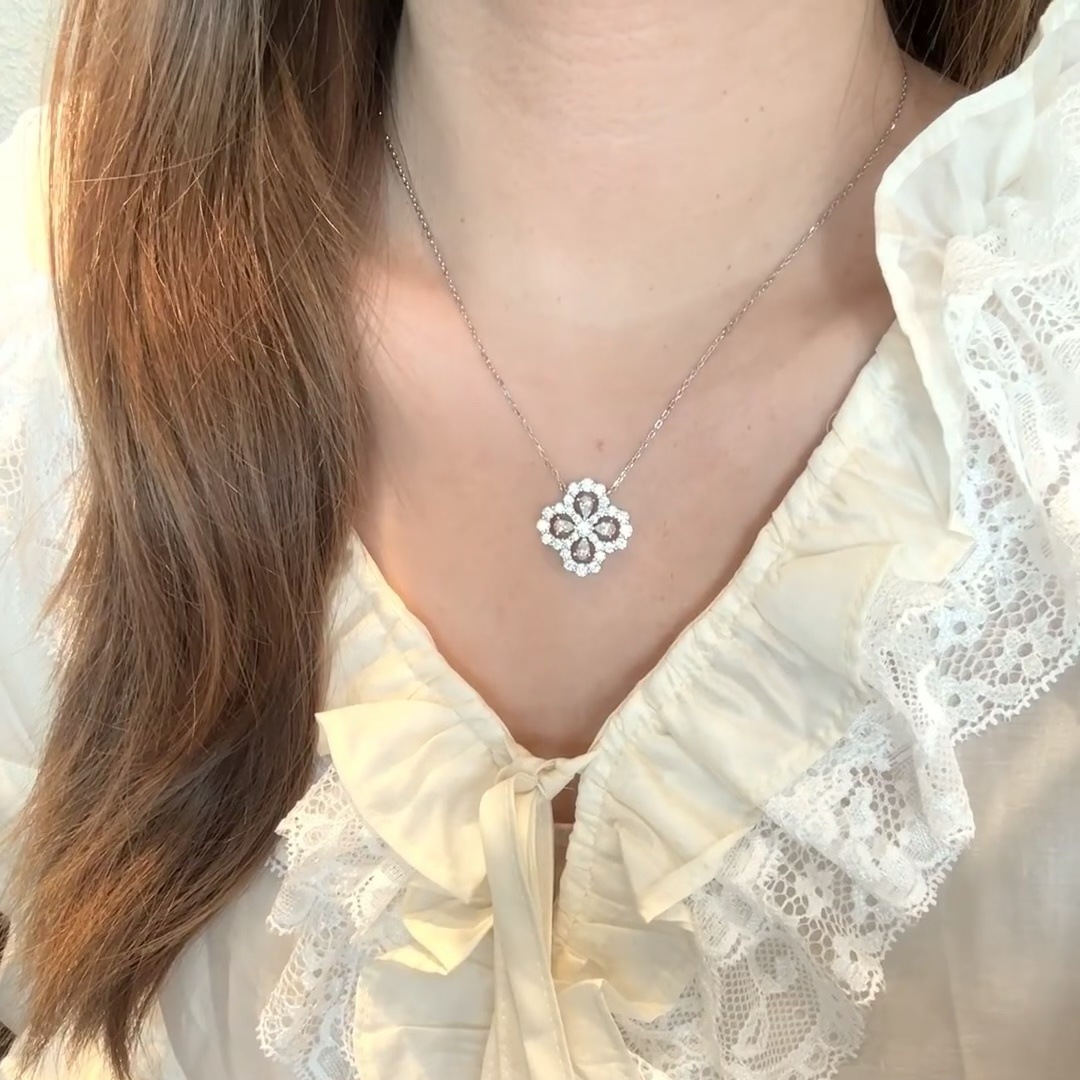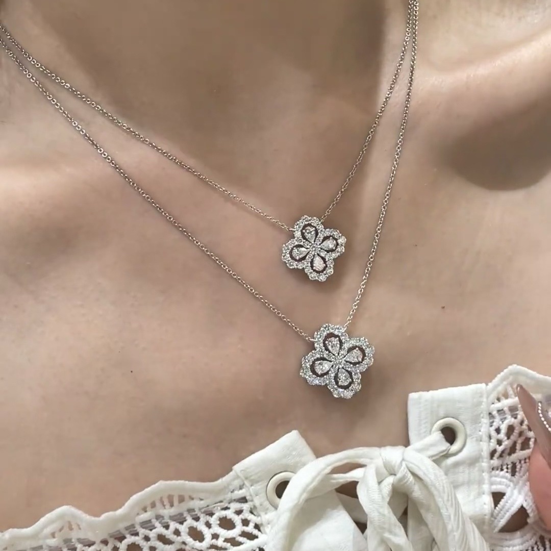 法国设计师四叶草loop项链女马眼钻满钻吊坠锁骨链精工高级感轻奢 English | 投诉
