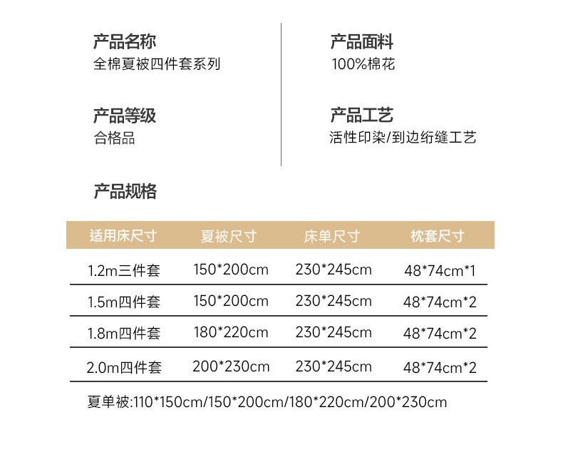 | 180*220cm夏被四件套 | ¥15080 | 999998床可售 |