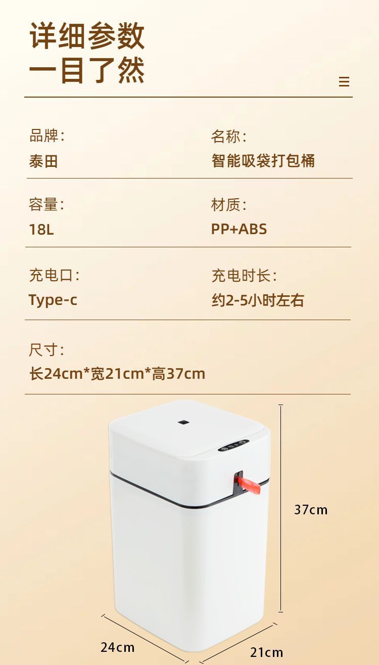赠送:电池/数据线,1卷垃圾袋