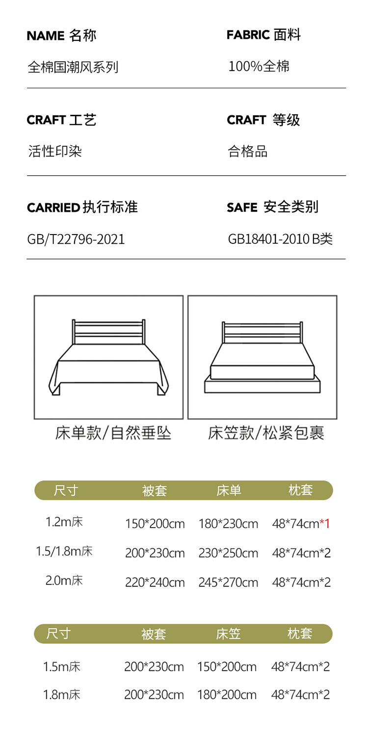 | 1.8m床四件套-床笠款(被套200*230cm) | ¥15640 | 300套可售 |