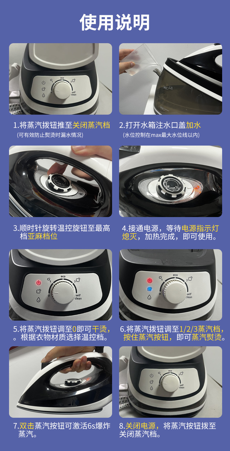 大功率超大水箱蒸汽电熨斗家用商用烫衣服挂烫机电烫斗神器可定制专供出口 English | 投诉