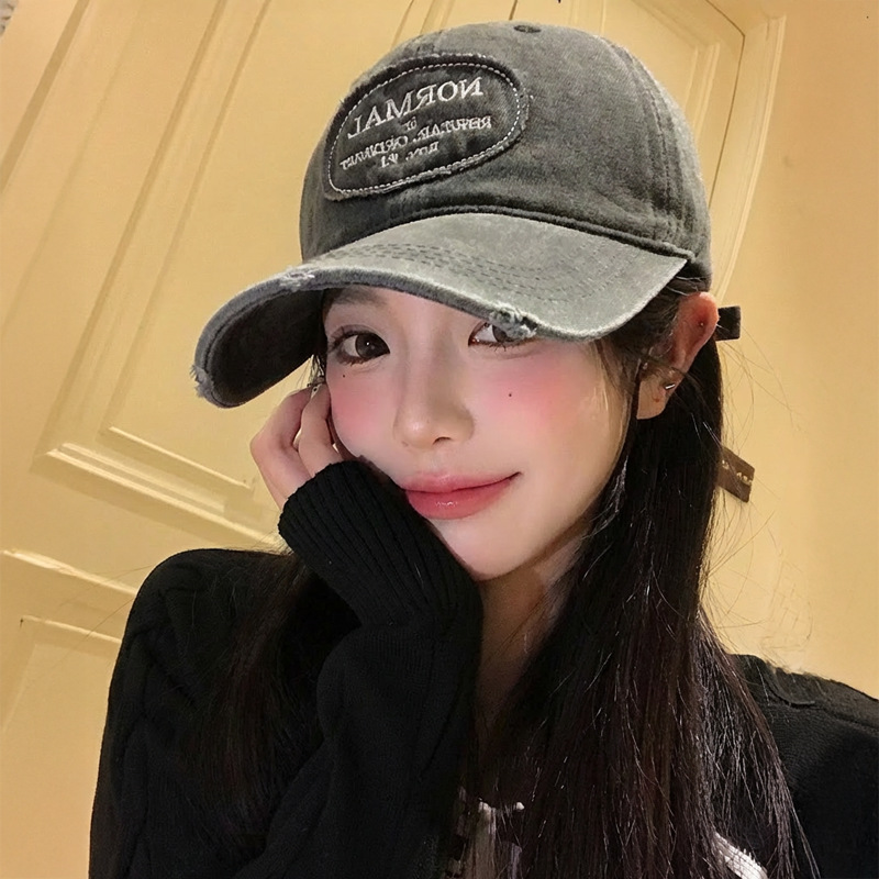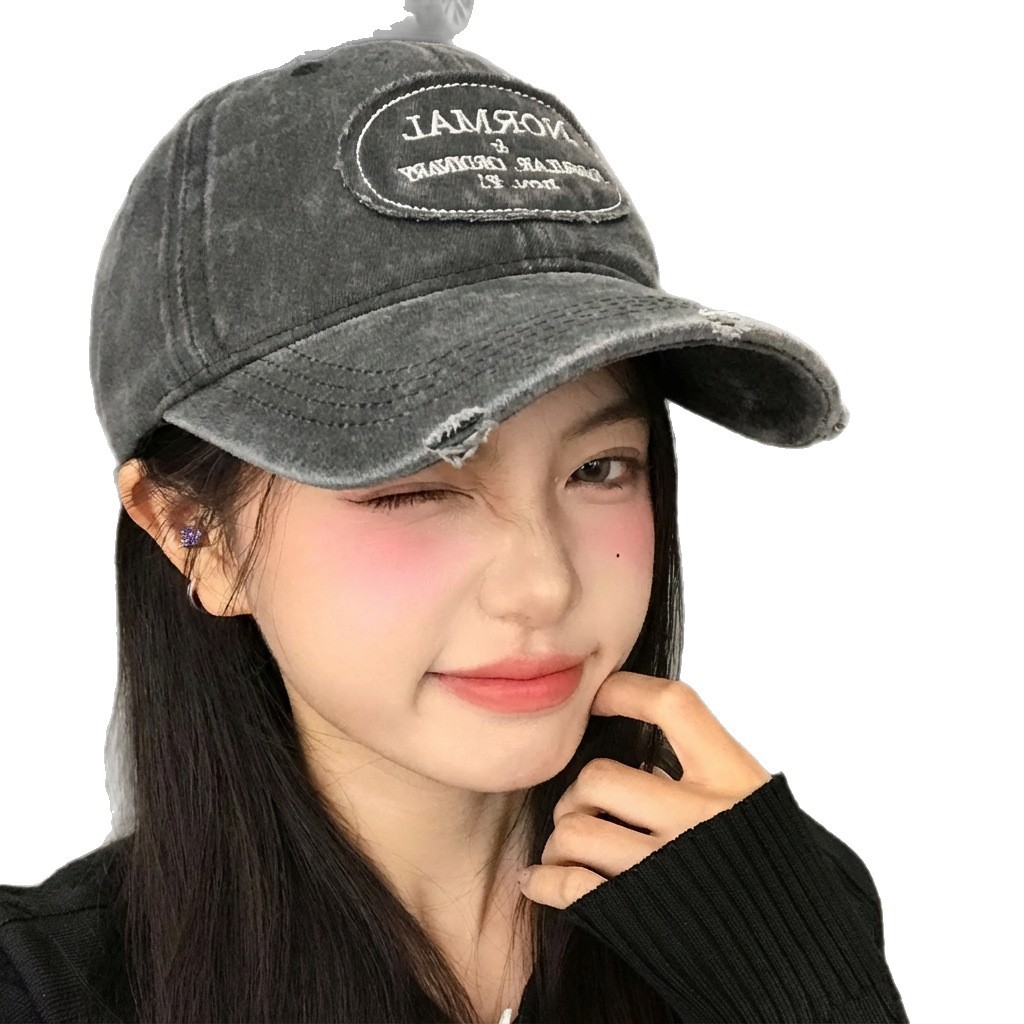 复古水洗做旧牛仔棒球帽女春夏大头围显脸小百搭美式软顶鸭舌帽子