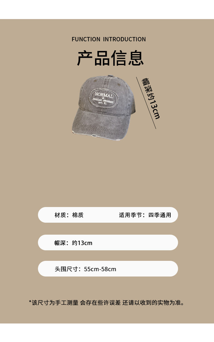 复古水洗做旧牛仔棒球帽女春夏大头围显脸小百搭美式软顶鸭舌帽子 投诉