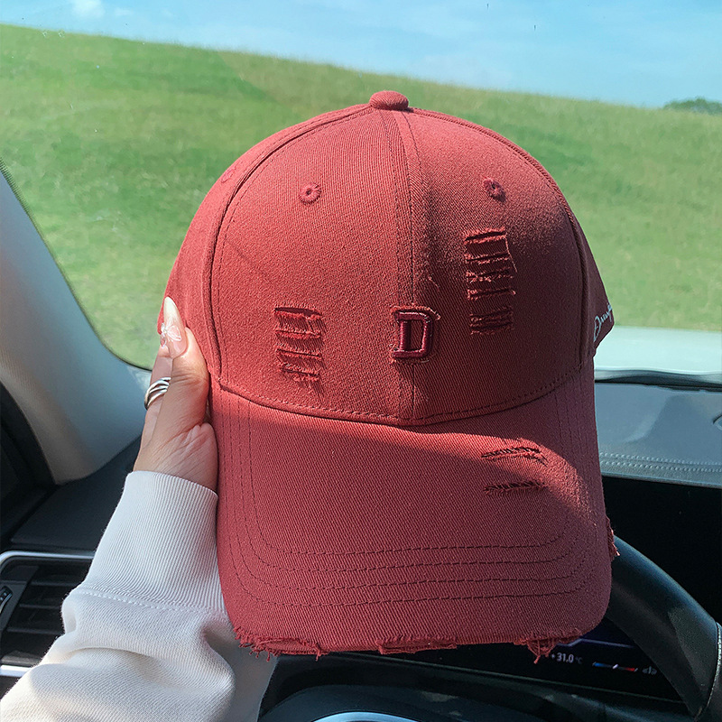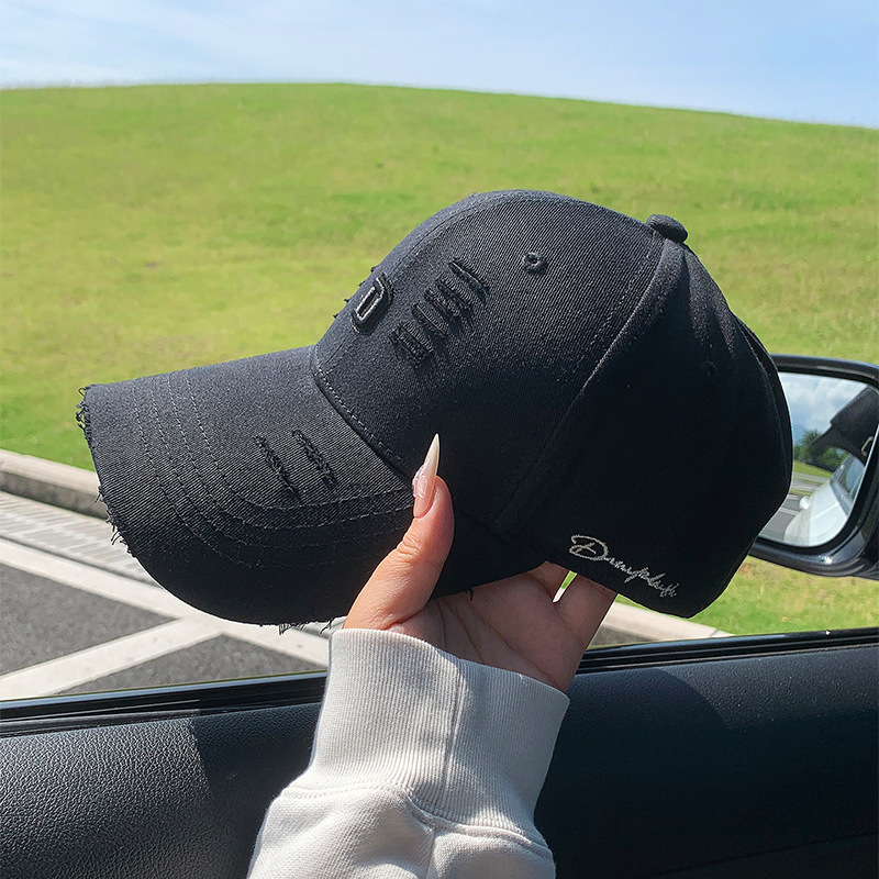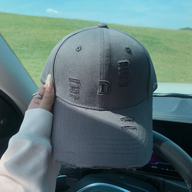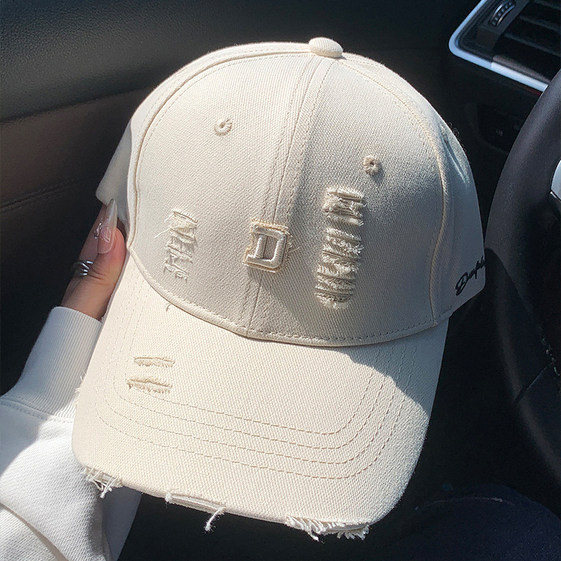 硬顶时尚字母刺绣棒球帽磨边做旧网红帽子男女春夏百搭潮流鸭舌帽