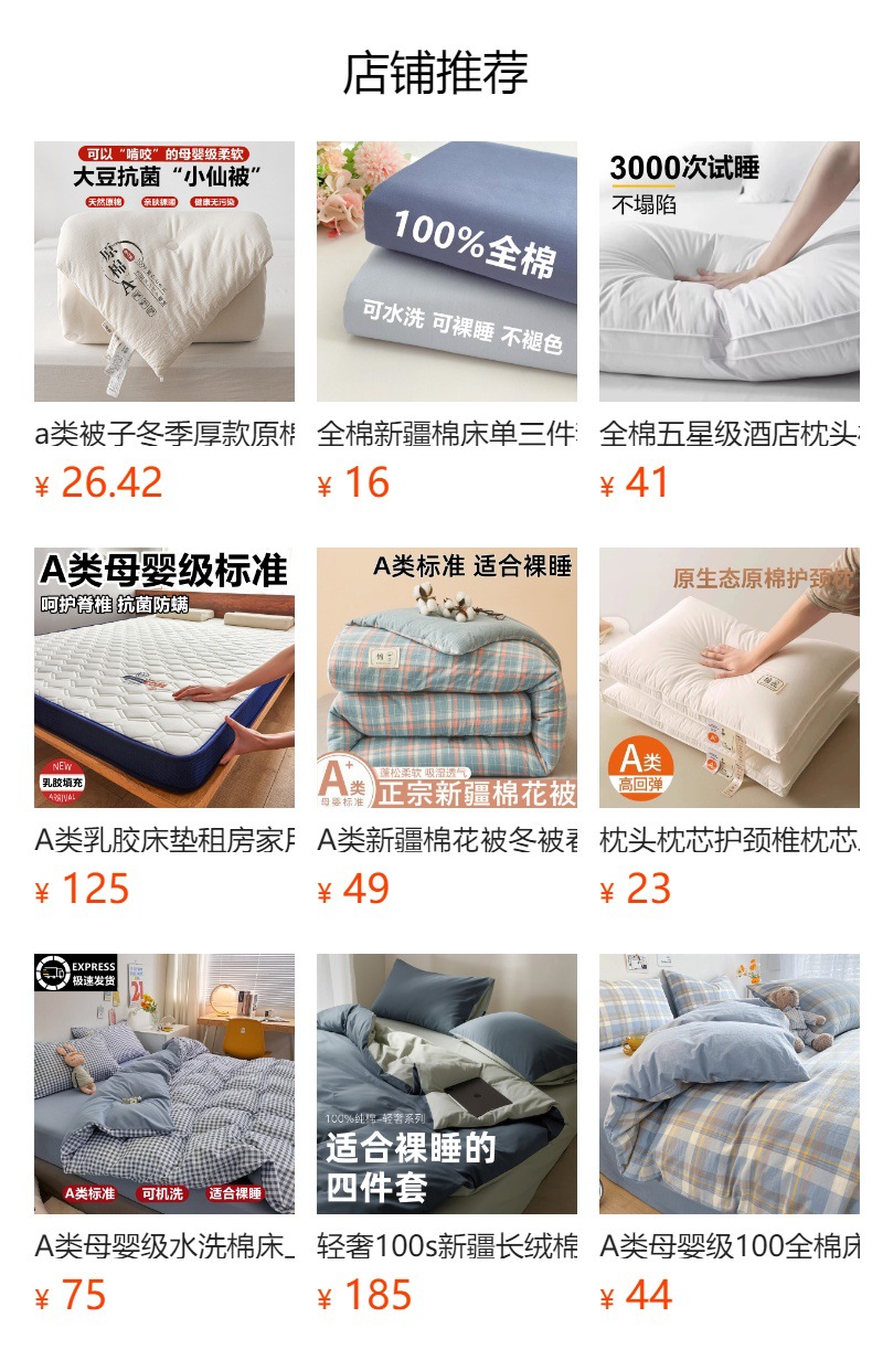 | 180*220单被套 | ¥4769 | 10000套可售 |