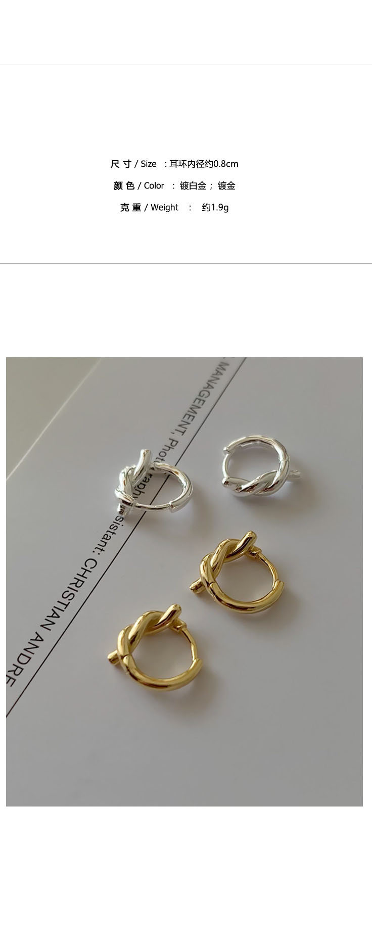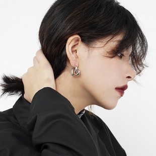 925银针圆圈耳环女新款个性小众设计睡觉免摘高级感ins风绳结耳扣 English | 投诉