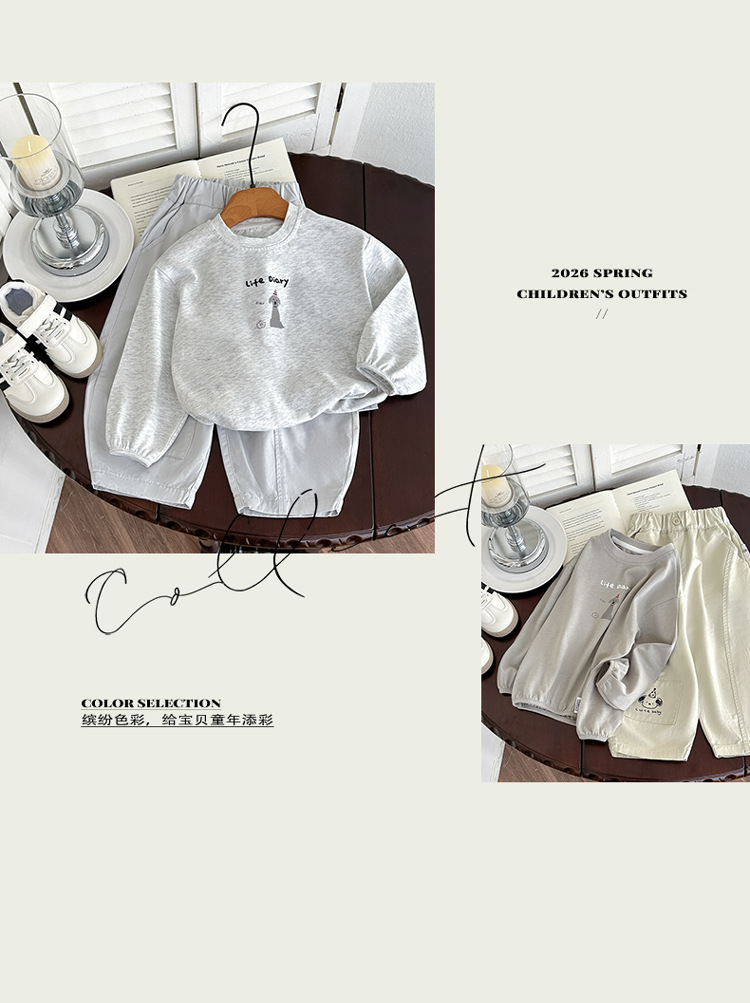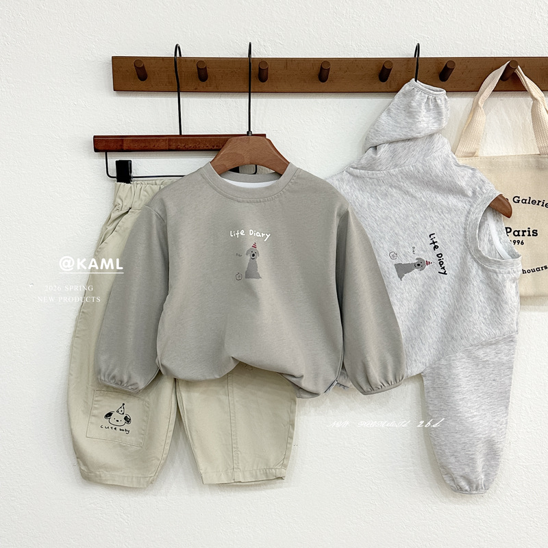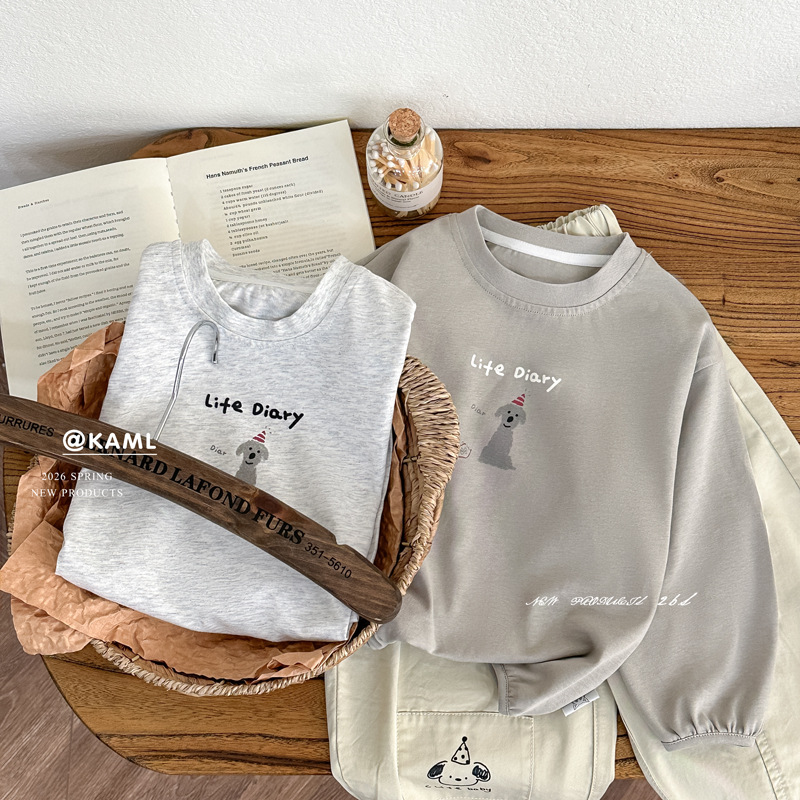 男童卫衣2026春季款儿童洋气圆领上衣卡通印花休闲套头衫女童T恤