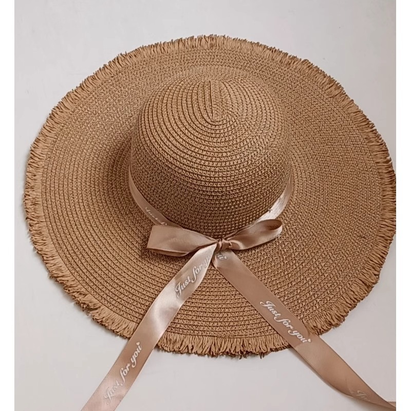 草帽女新款毛边平檐沙滩海边旅游夏天防晒遮阳渔夫帽大檐帽
