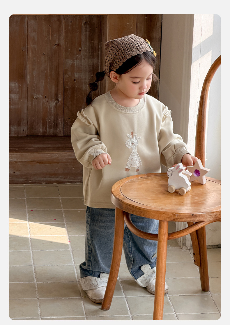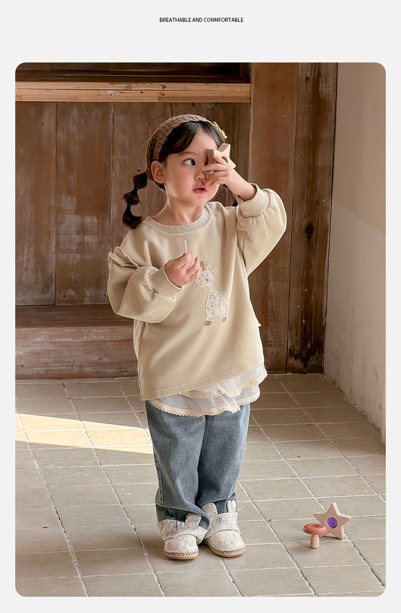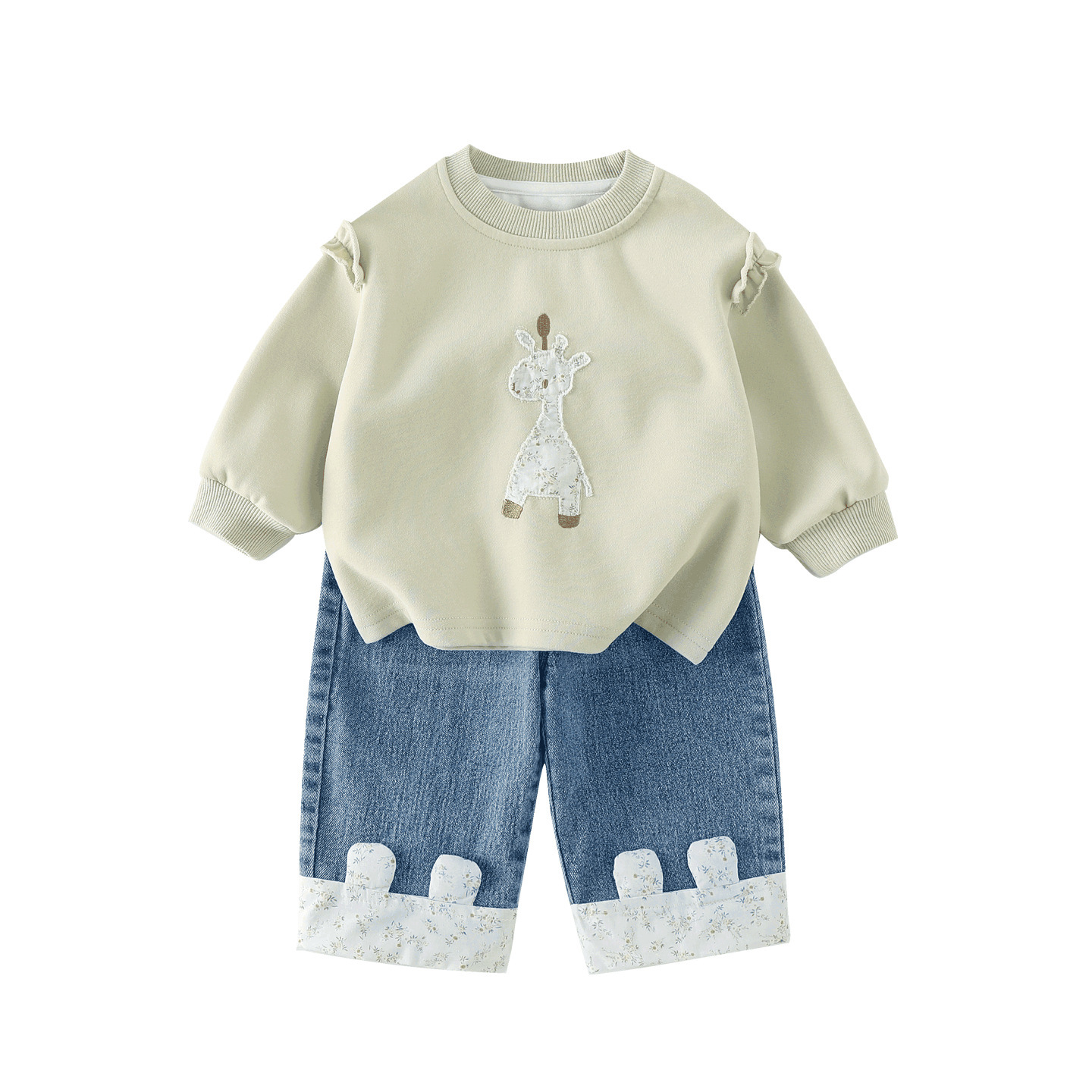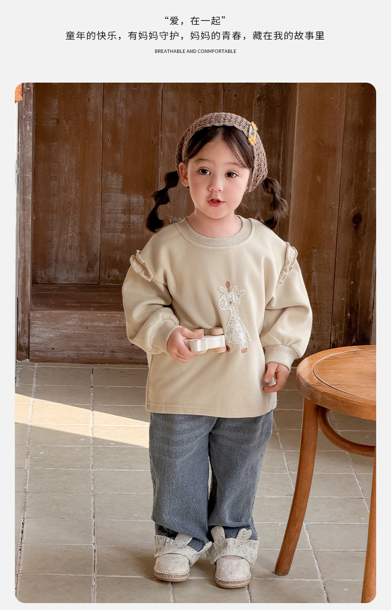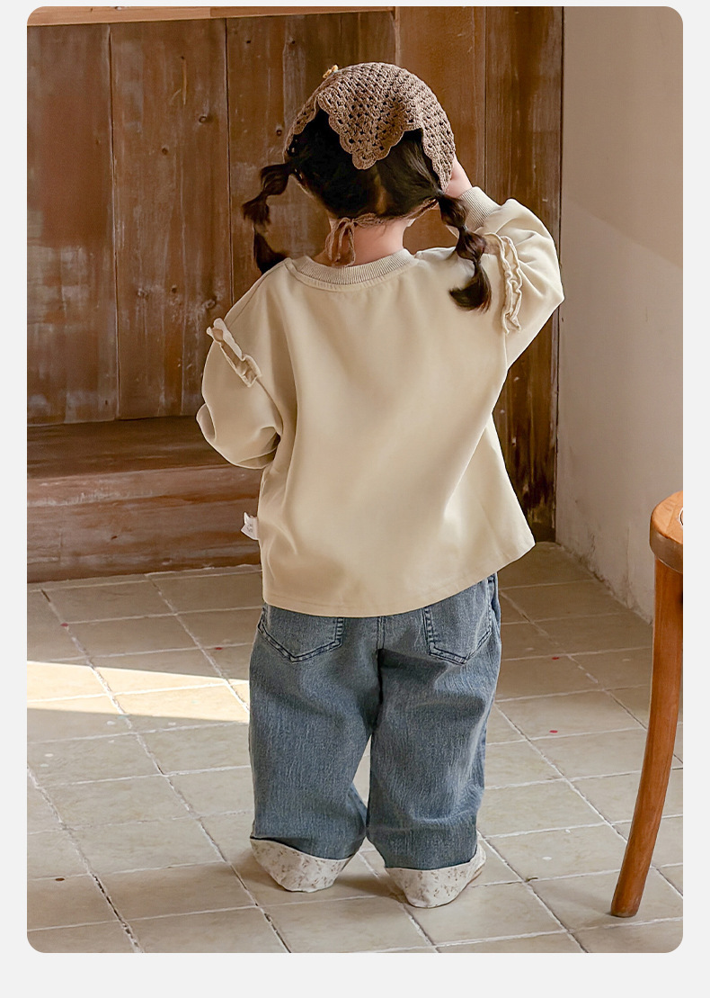 2026春季新款卡通女童套装婴幼儿女宝宝花边卫衣牛仔裤分体两件套