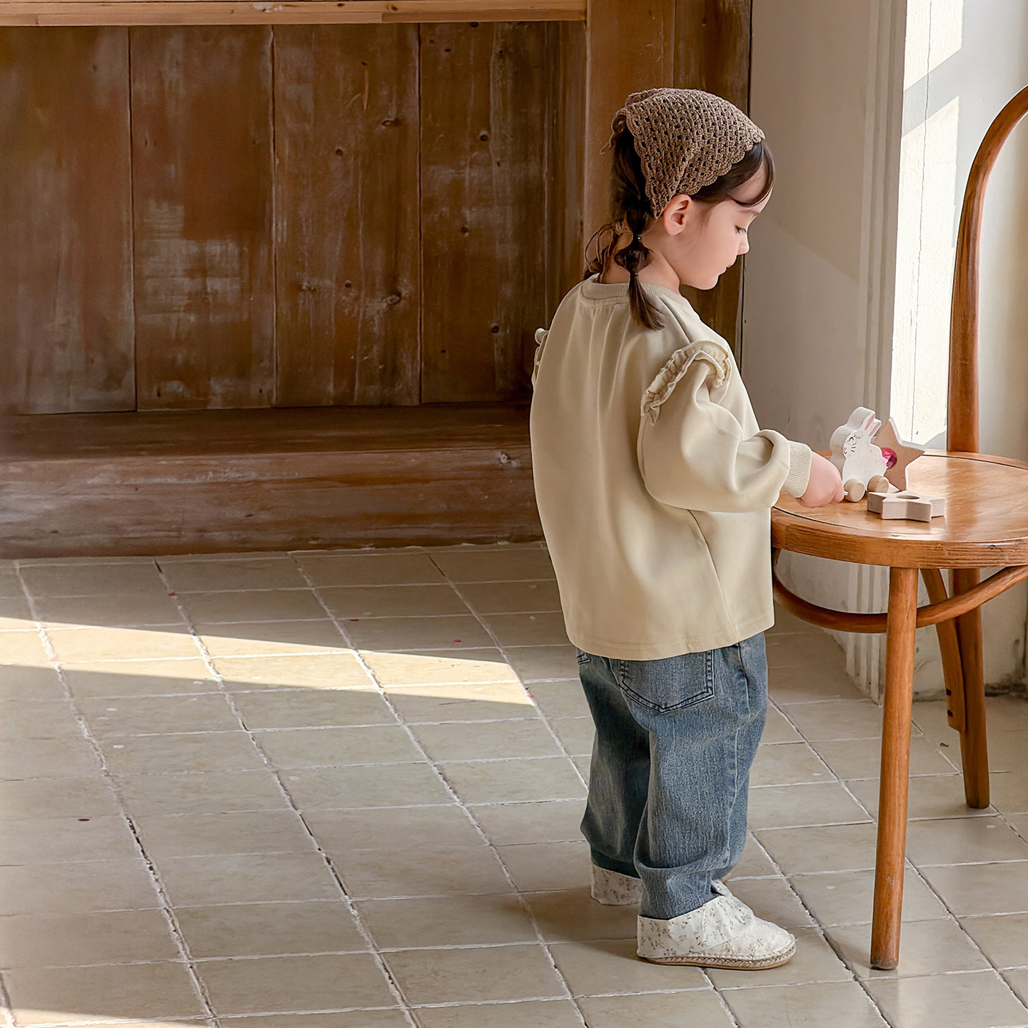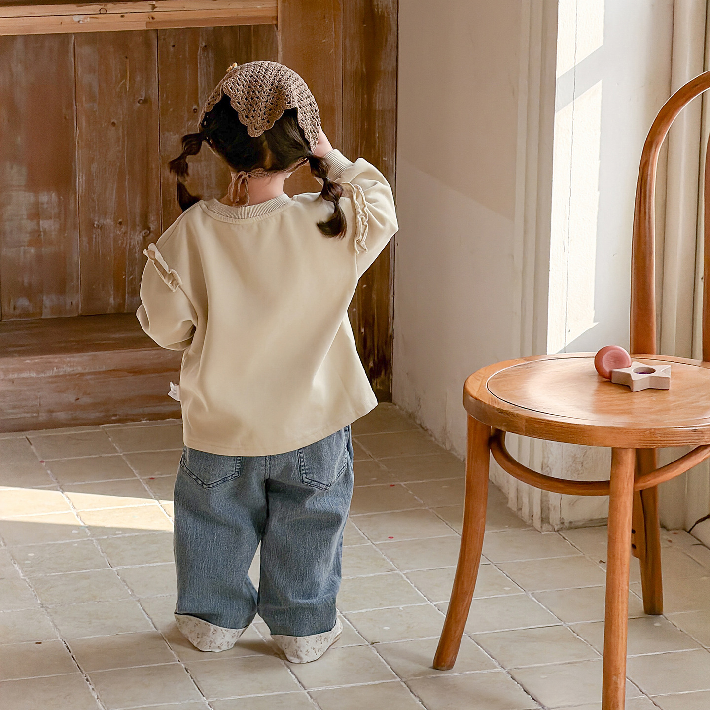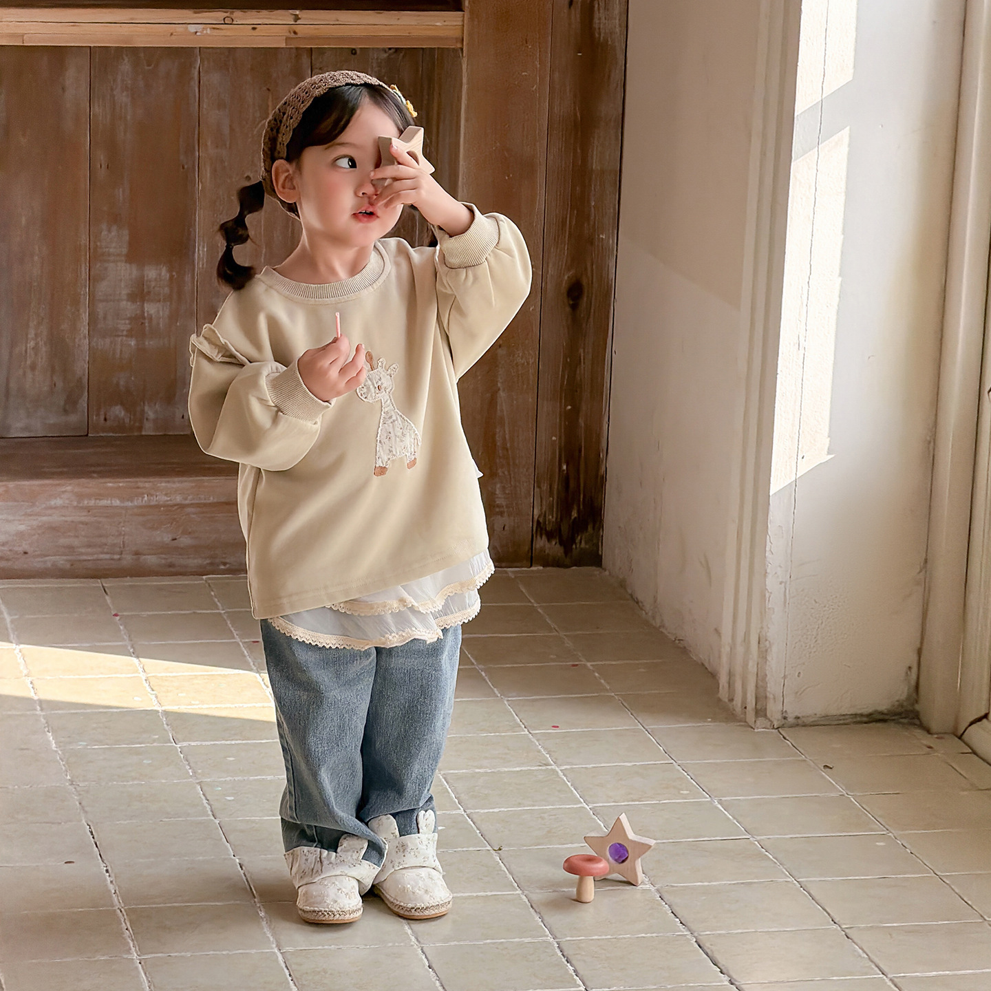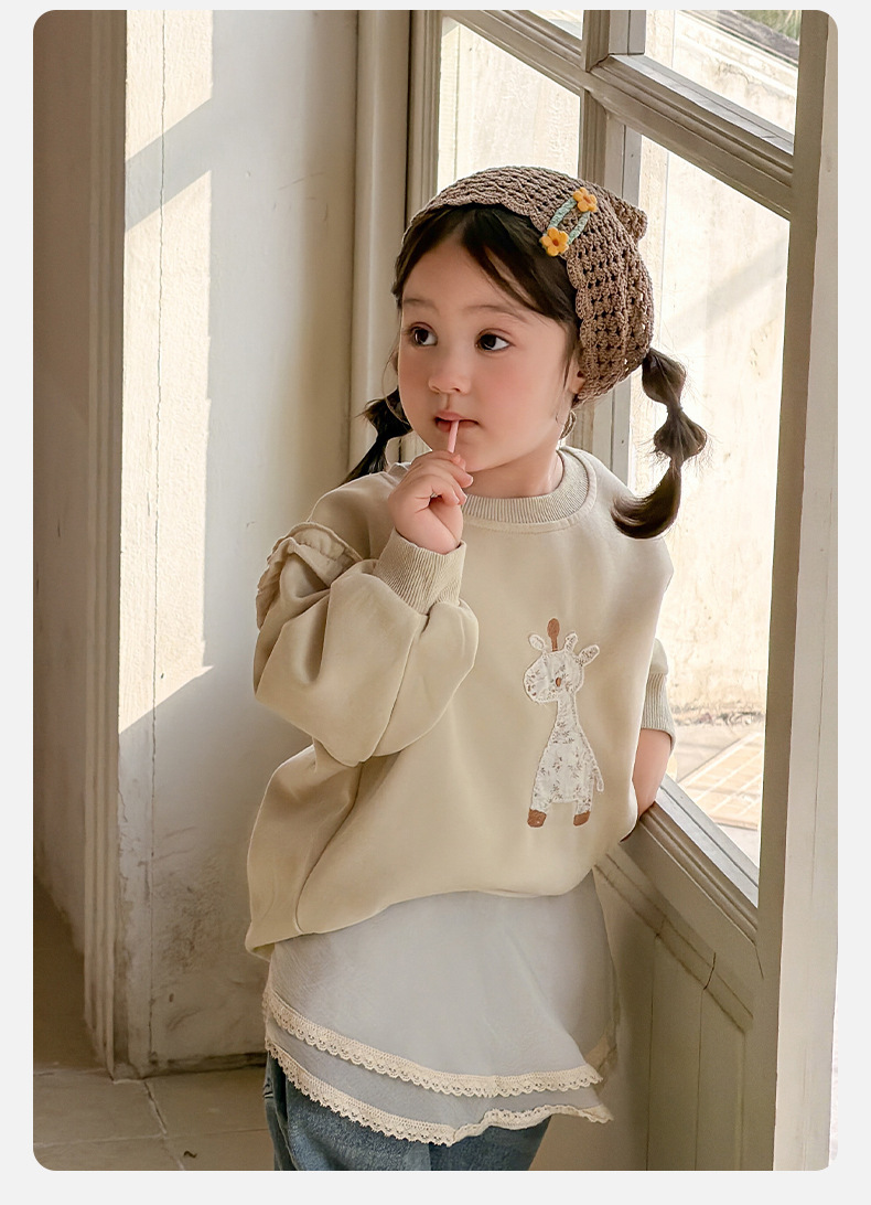 2026春季新款卡通女童套装婴幼儿女宝宝花边卫衣牛仔裤分体两件套