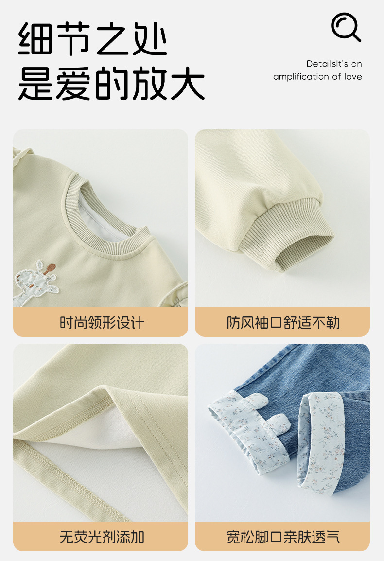 2026春季新款卡通女童套装婴幼儿女宝宝花边卫衣牛仔裤分体两件套 投诉