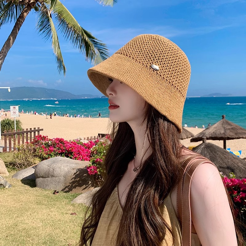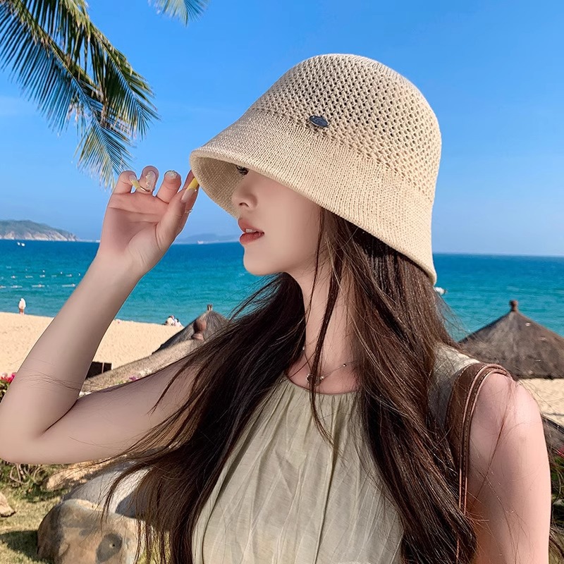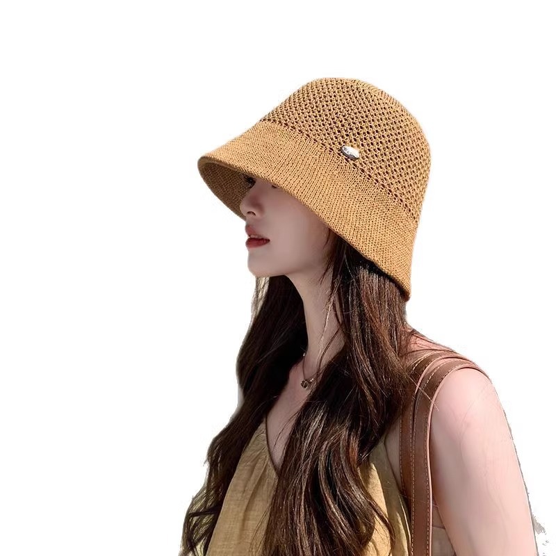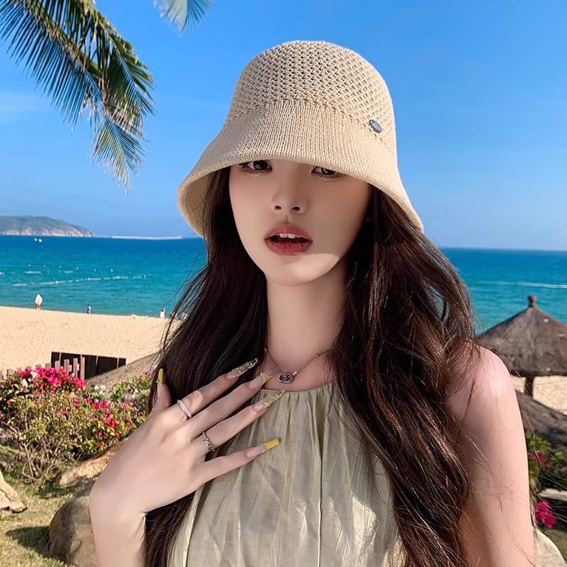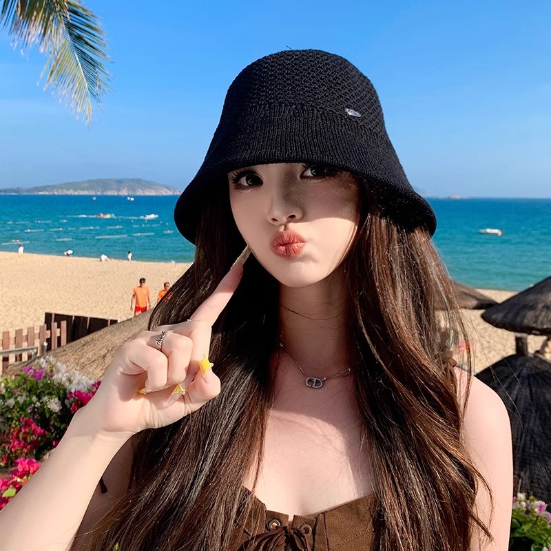时尚字母小标镂空针织帽子女夏季新款百搭防晒渔夫帽气质水桶盆帽