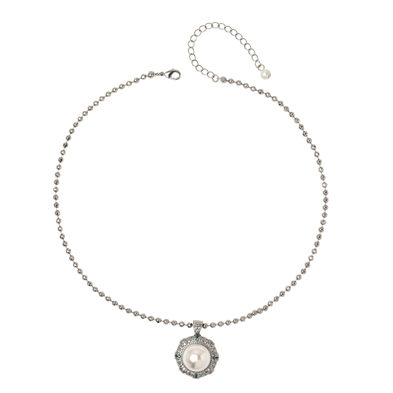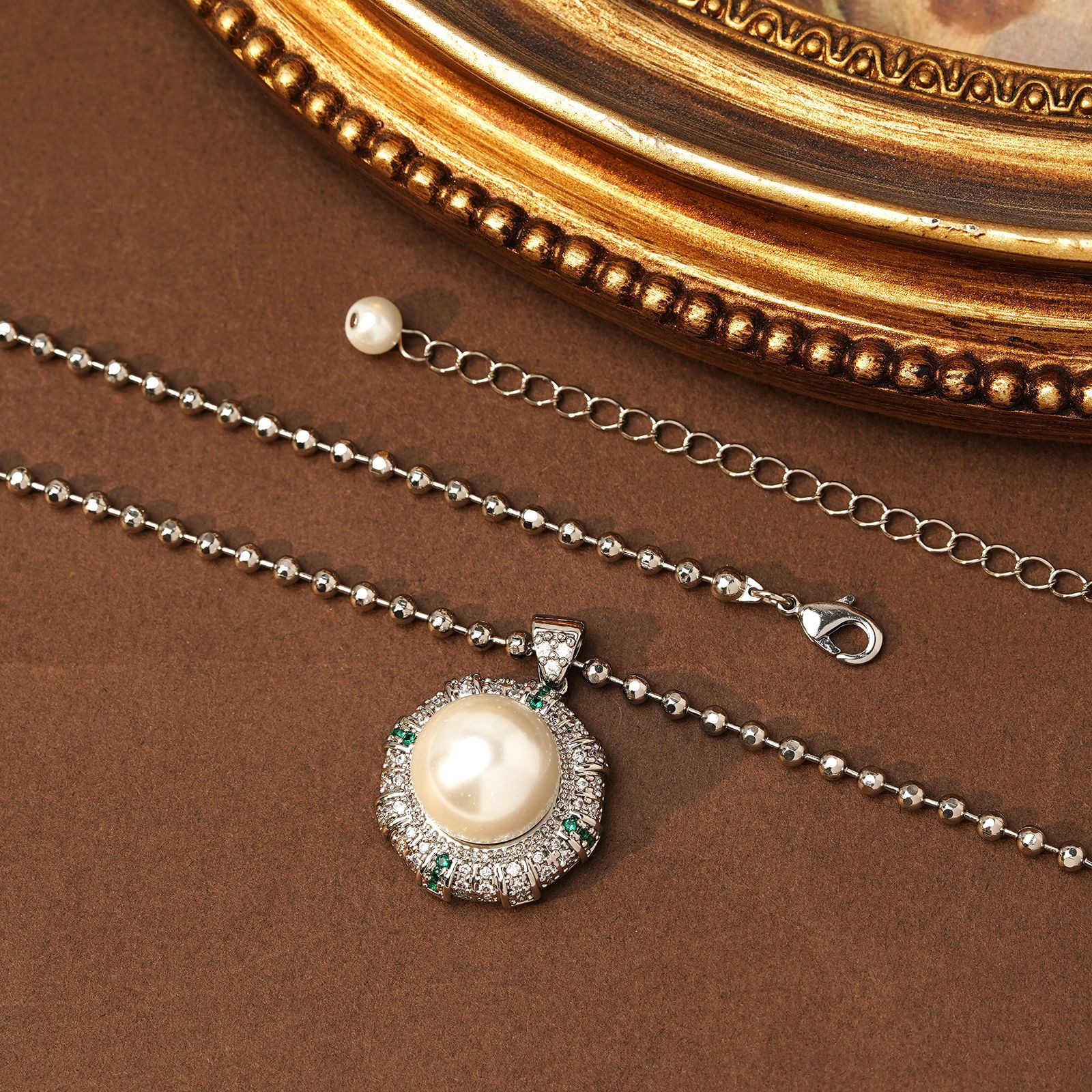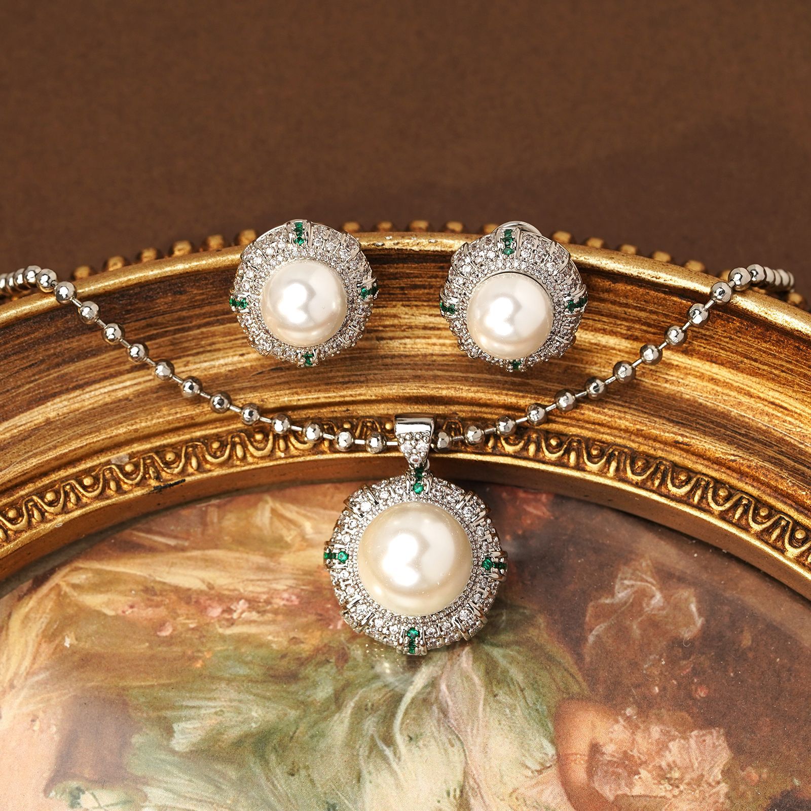 青岛中古时尚优雅琉璃珍珠女简洁铜镶锆石八芒星几何项链耳环套装