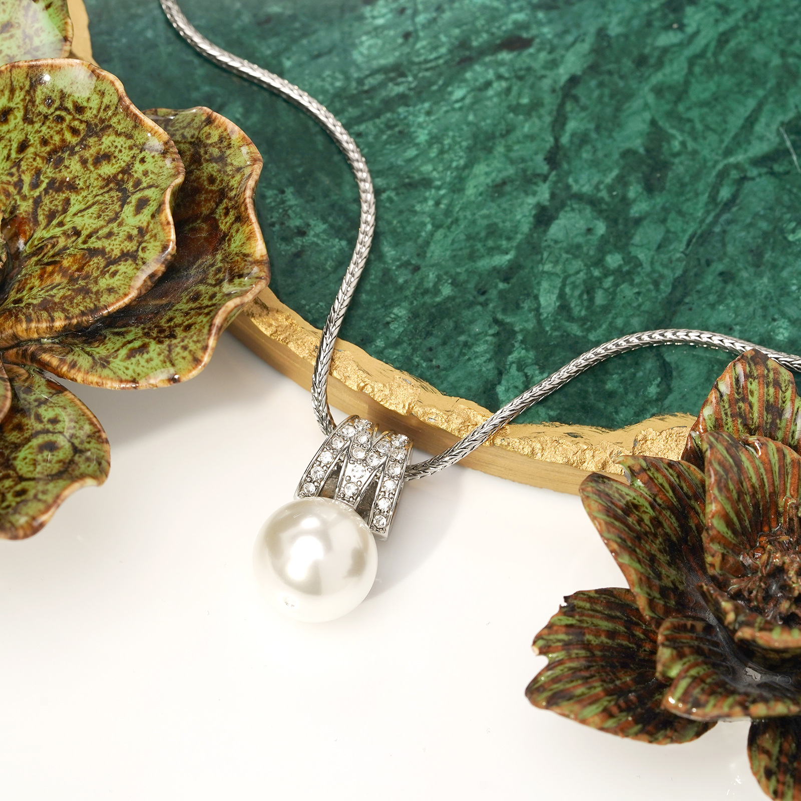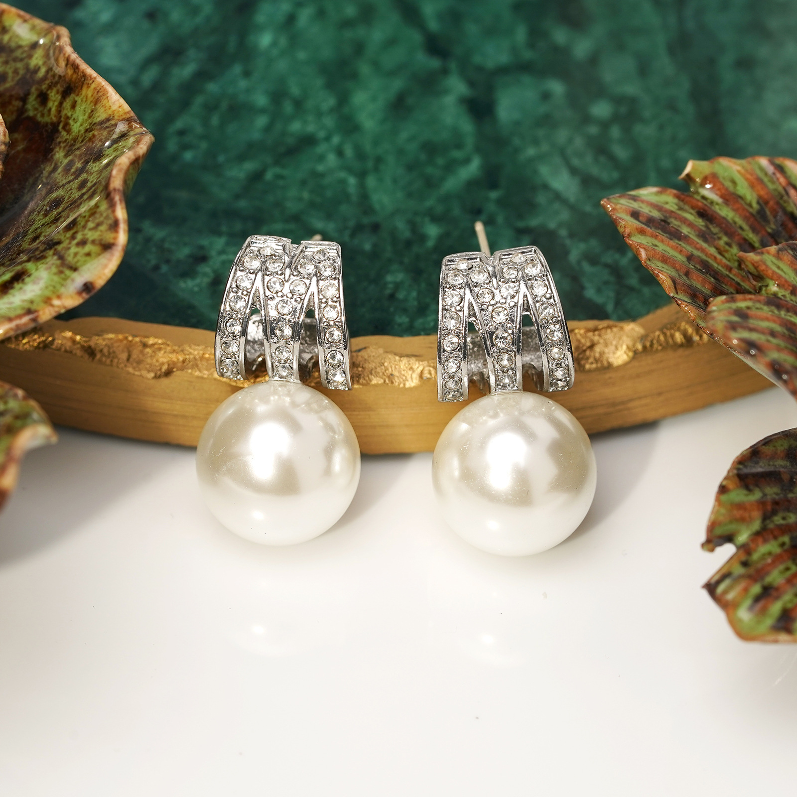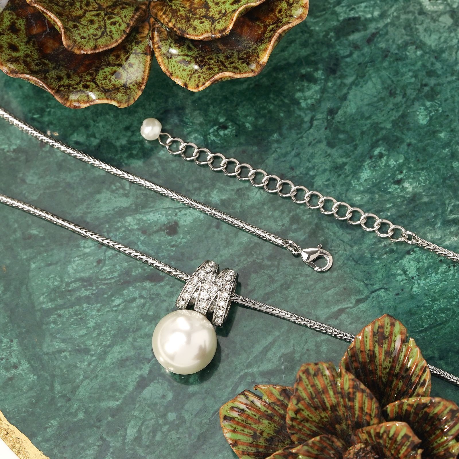 青岛中古珍珠首饰套装耳钉吊坠经典简约字母M镶锆石几何高级项链 English | 投诉