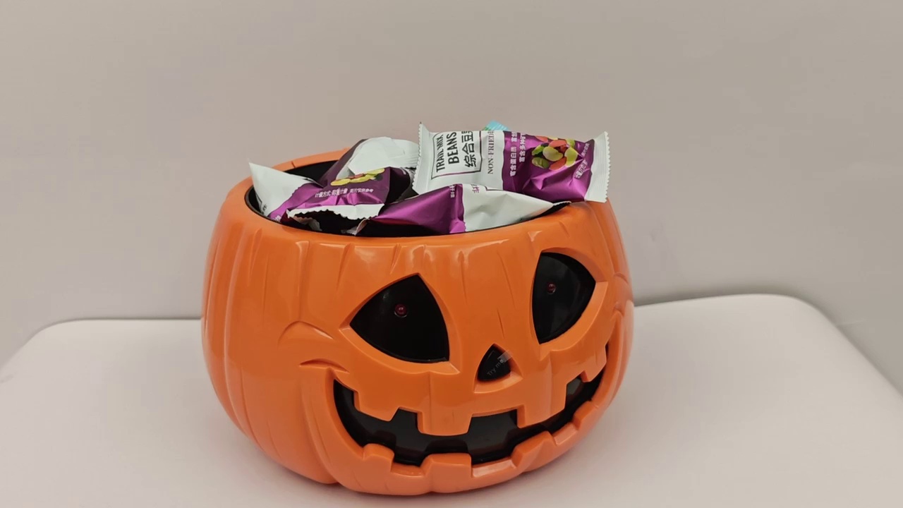 万圣节电动感应南瓜桶 骷髅手弹出发光糖果罐工厂源头厂家直销
