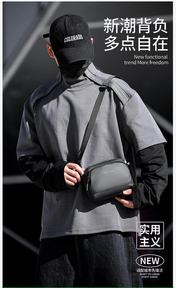 2026新款时尚休闲潮男斜挎防水皮膜男包韩版潮流单肩多隔层单肩包