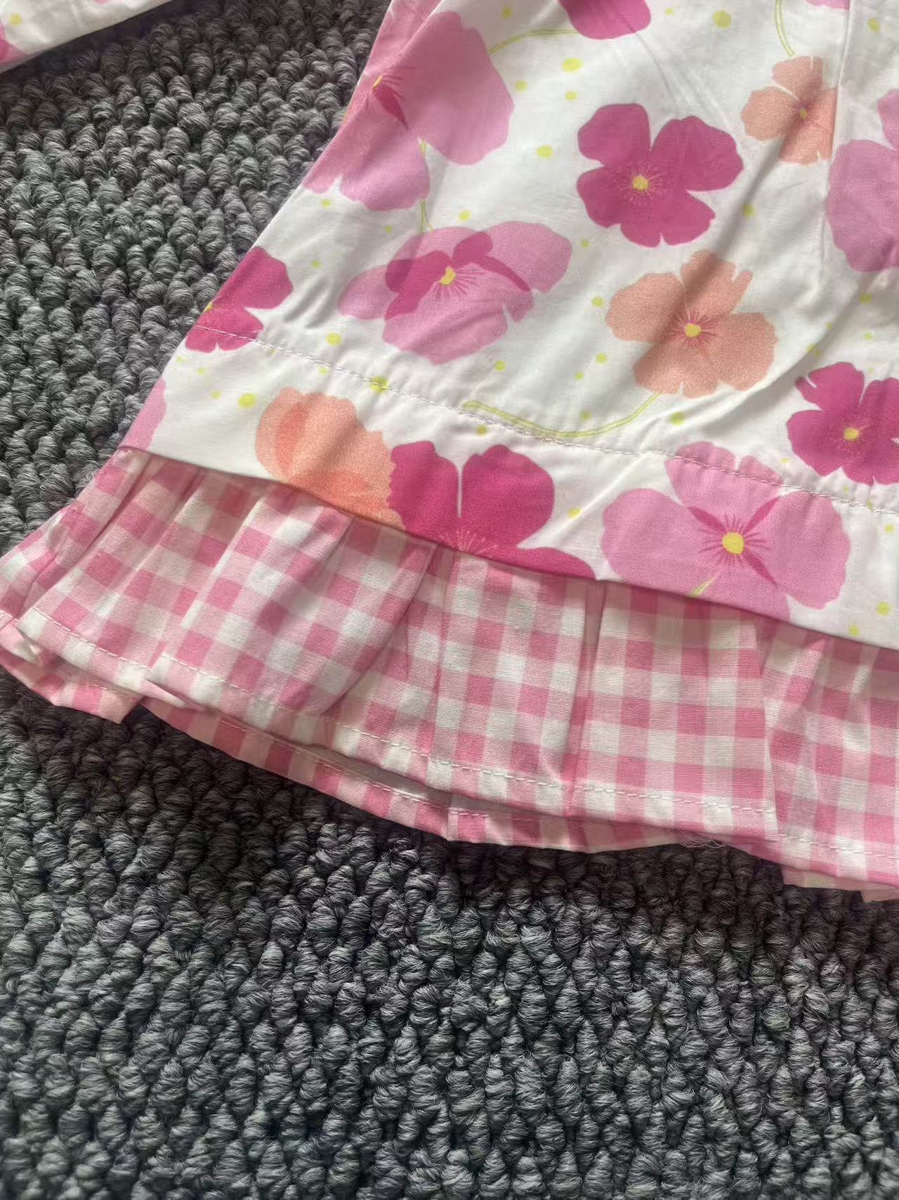 跨境2026春夏新品女童家居欧美中小套装舒适印花可爱带扣子两件套 投诉