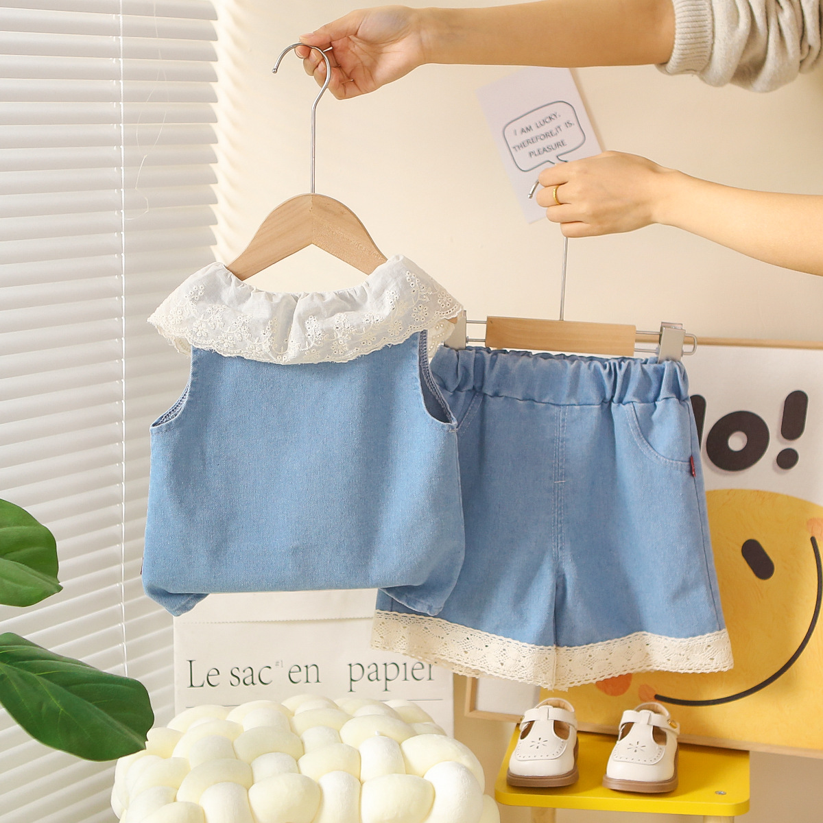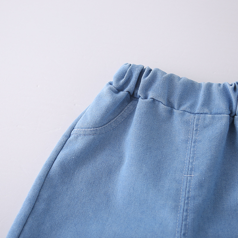 女童装花边翻领2026夏季新款女孩水洗软牛仔无袖阔腿牛仔裤两件套 投诉