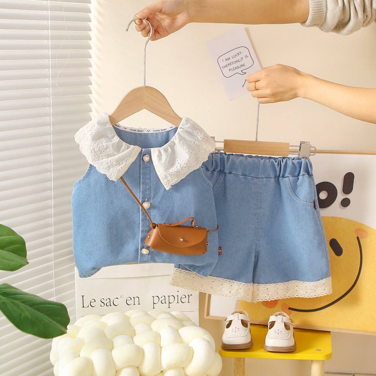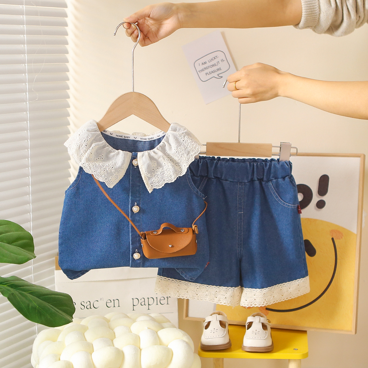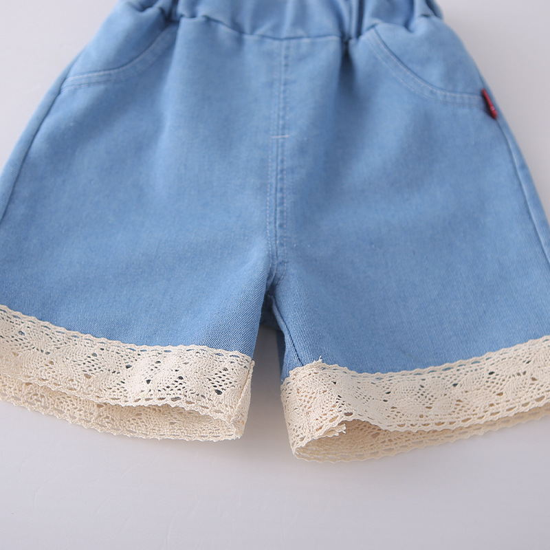 主面料成分: 棉 适合年龄段: 婴幼童(1~3岁,80~100cm) 套装件数: 两件套 品牌: 逗芽堂 厚薄: 薄款 面料名称: 棉 袖长: 短袖 裤长: 短裤 货号: FL蕾丝翻领牛仔短袖 货源类别: 现货 适用性别: 女 风格: 韩版 套装类型: 裤套装 礼盒内容: 服装 产地: 浙江 适合季节: 夏季 是否连帽: 不连帽 面料工艺: 柔软处理 图片实拍: 实拍无模特 是否库存: 否 重量: 0.5 kg/套
