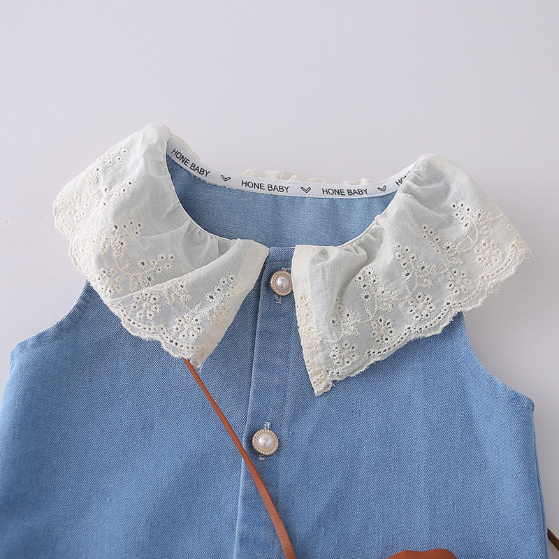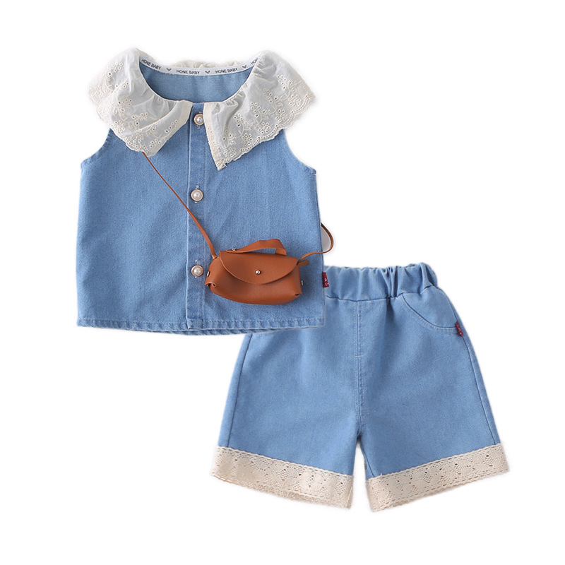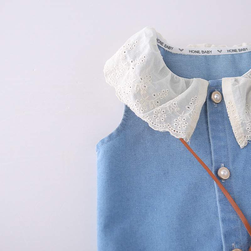女童装花边翻领2026夏季新款女孩水洗软牛仔无袖阔腿牛仔裤两件套