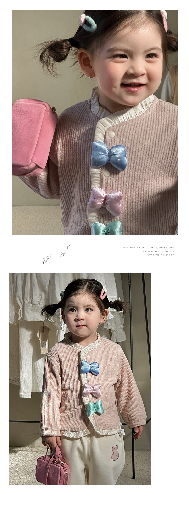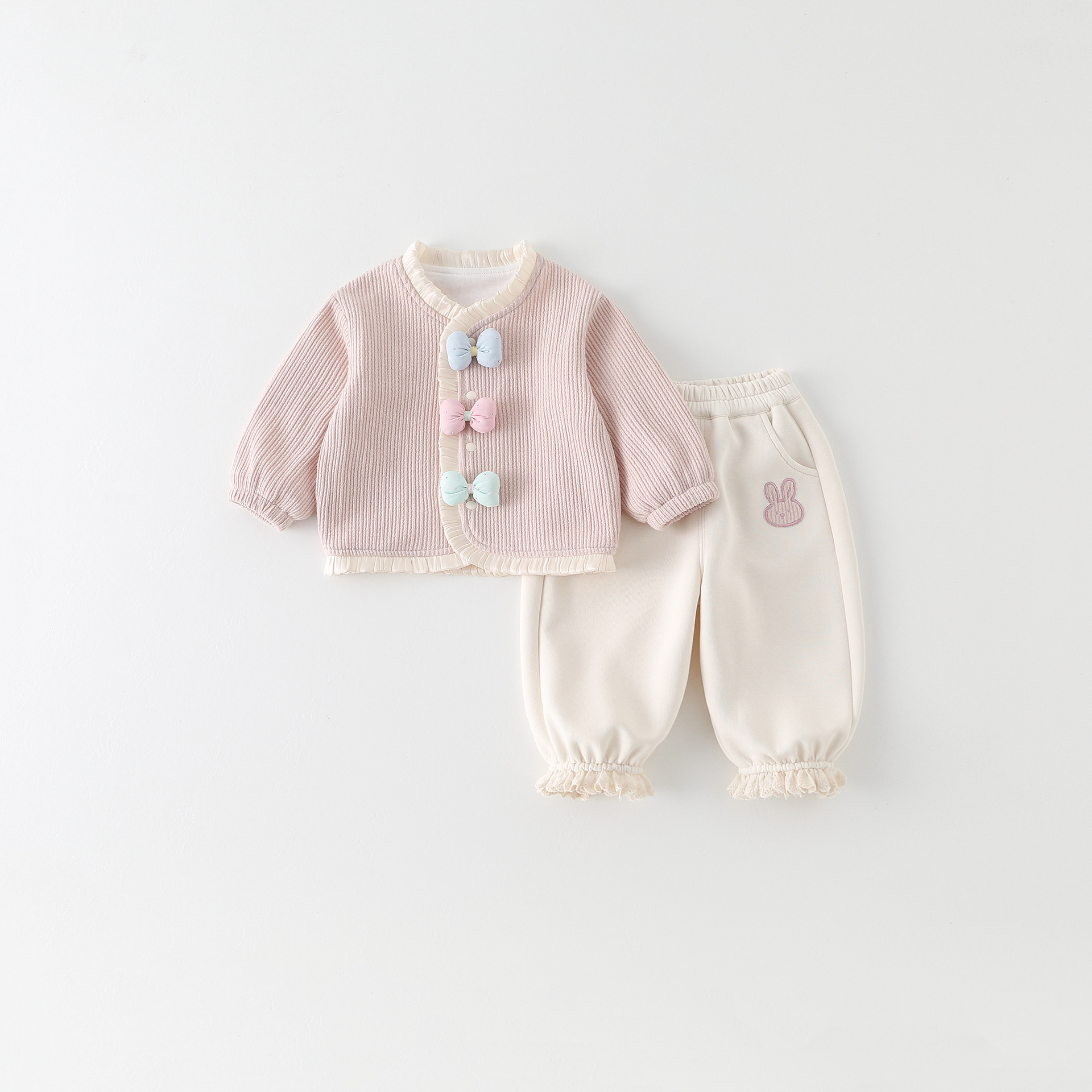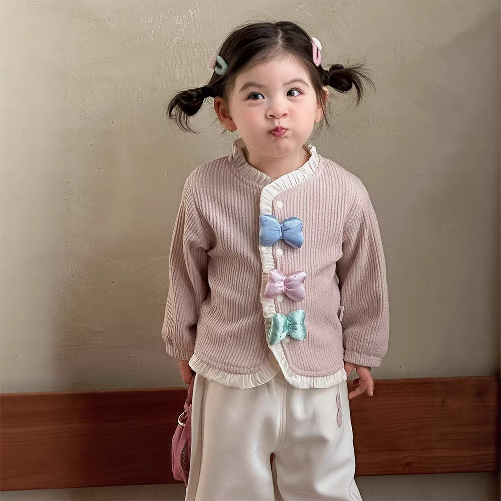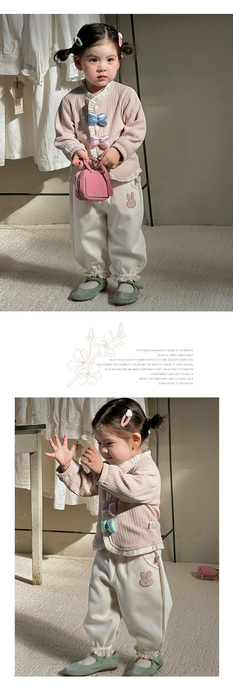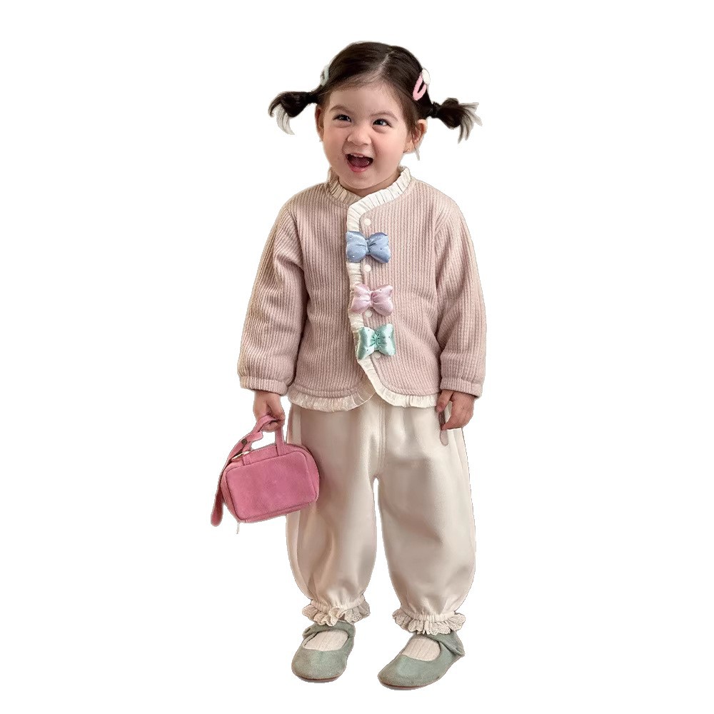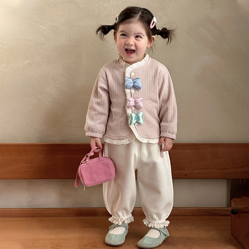 童装新款女童套装春装洋气儿童两件套女宝宝蝴蝶结外套裤子春季A