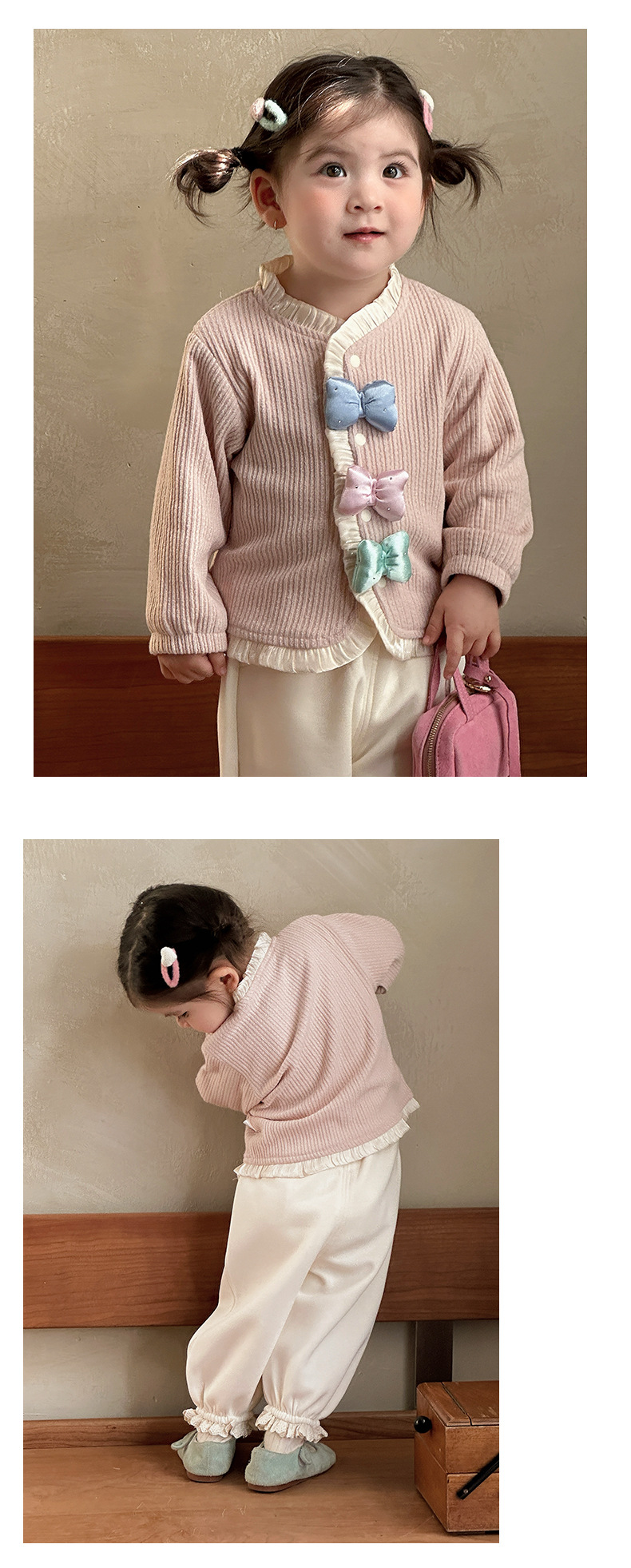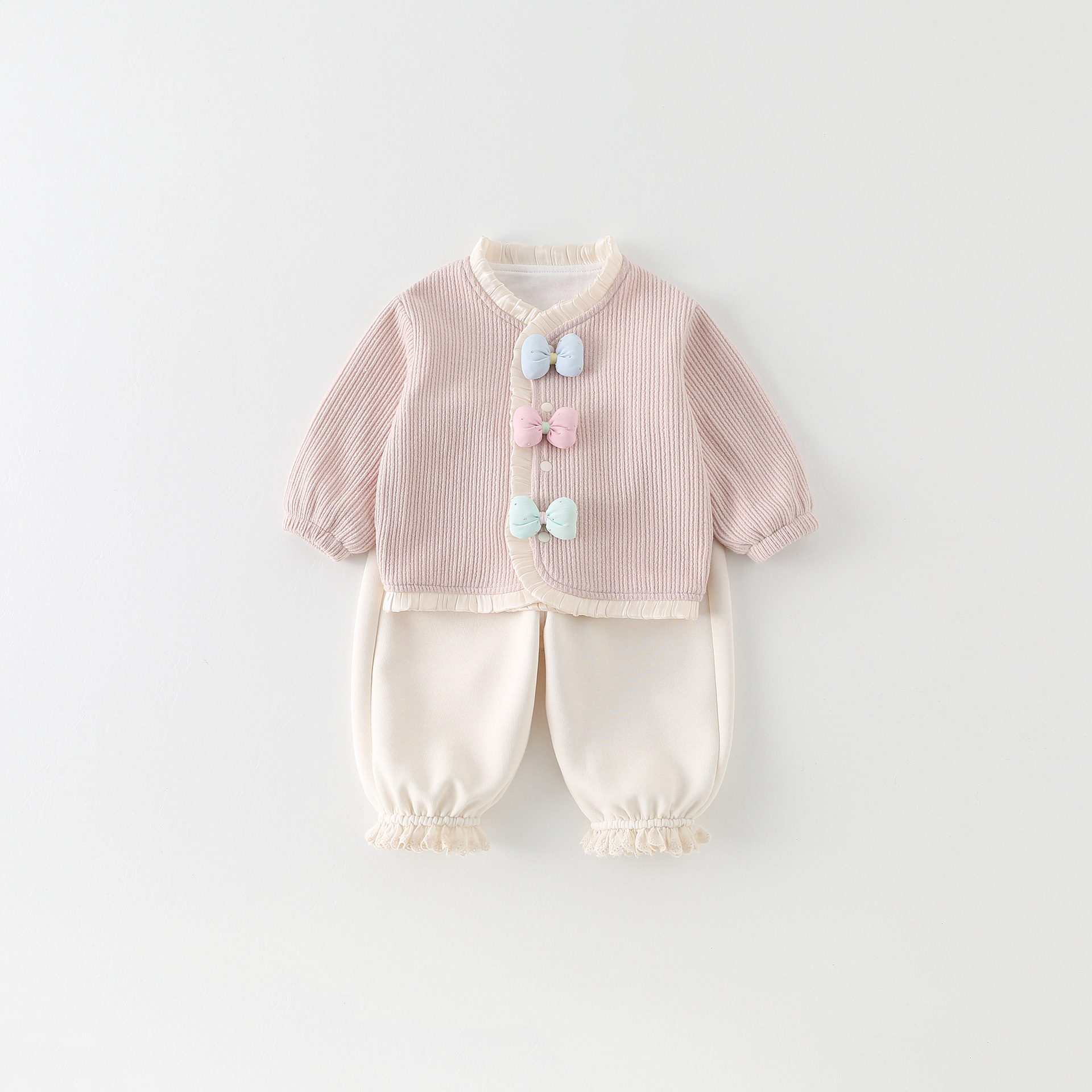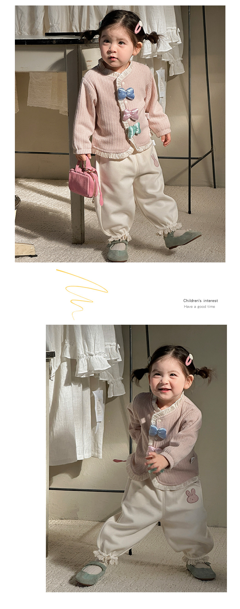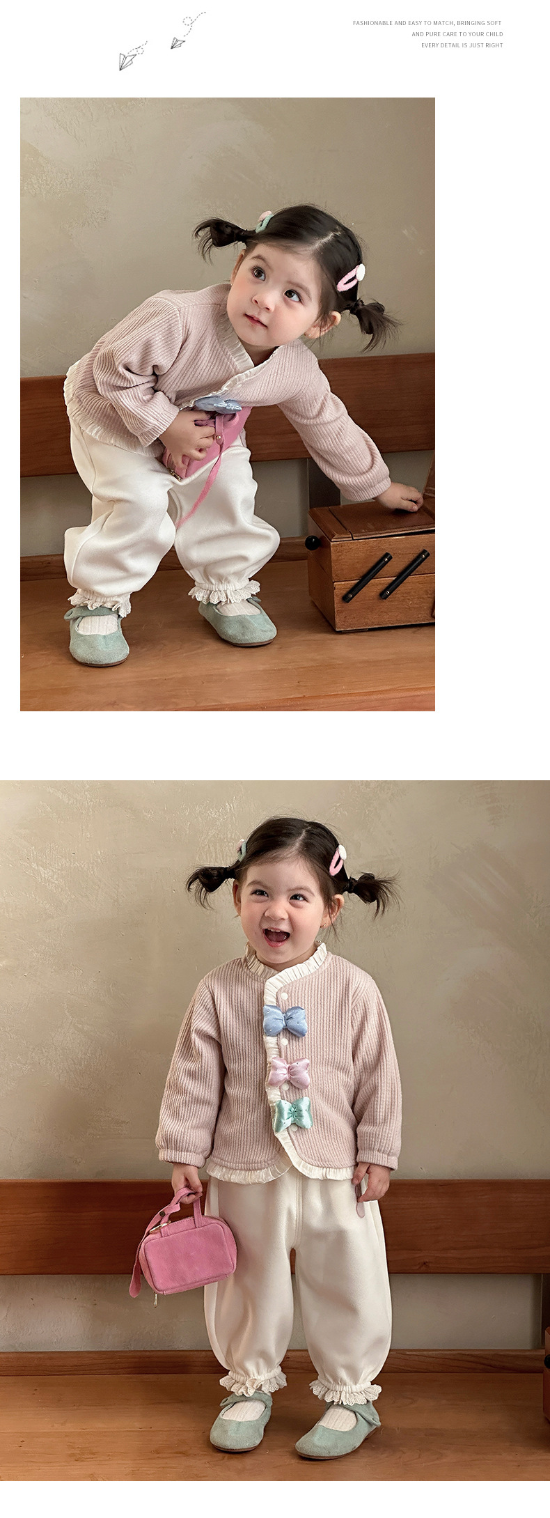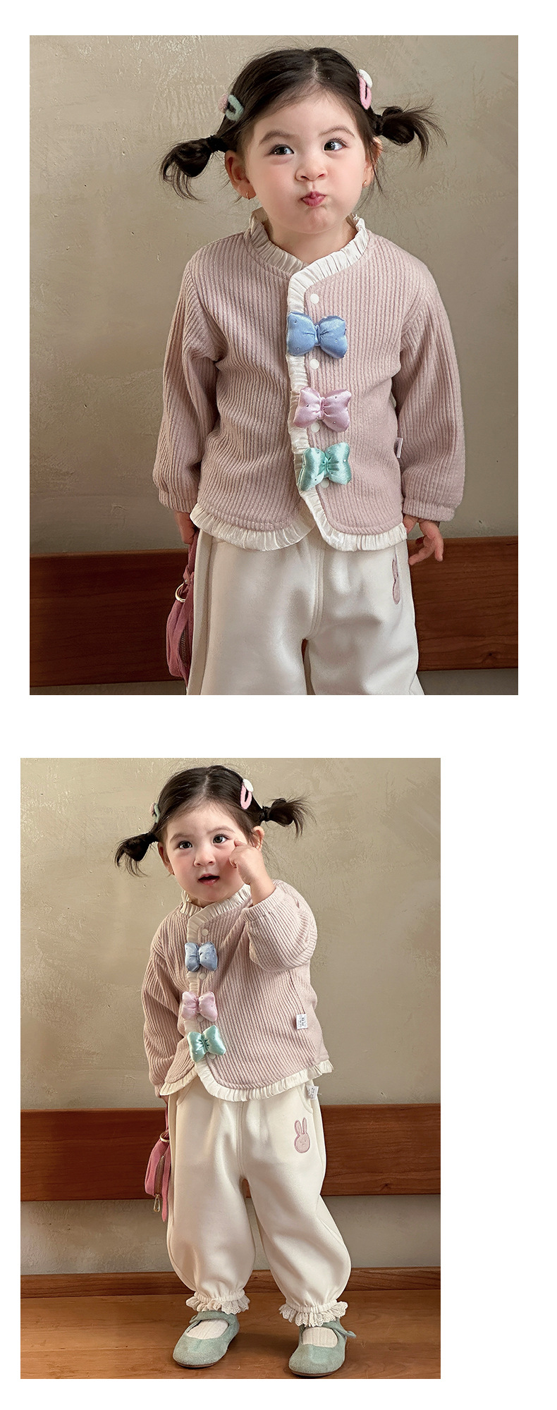 童装新款女童套装春装洋气儿童两件套女宝宝蝴蝶结外套裤子春季A