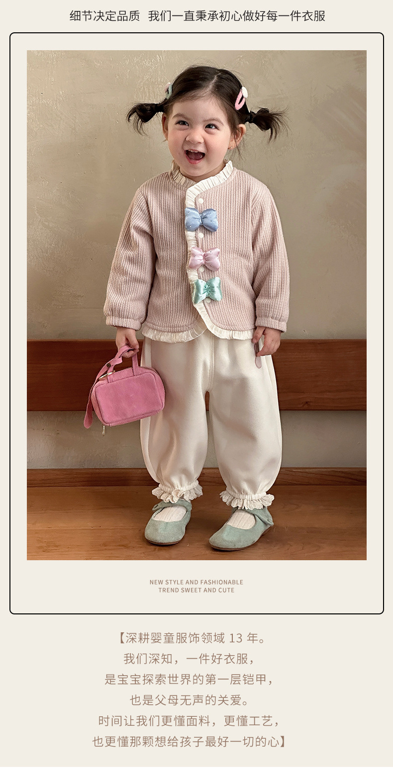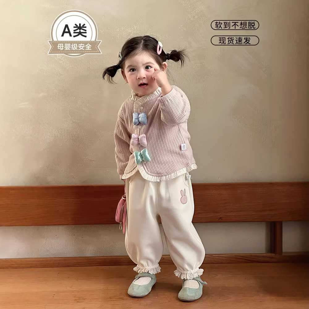 童装新款女童套装春装洋气儿童两件套女宝宝蝴蝶结外套裤子春季A 投诉