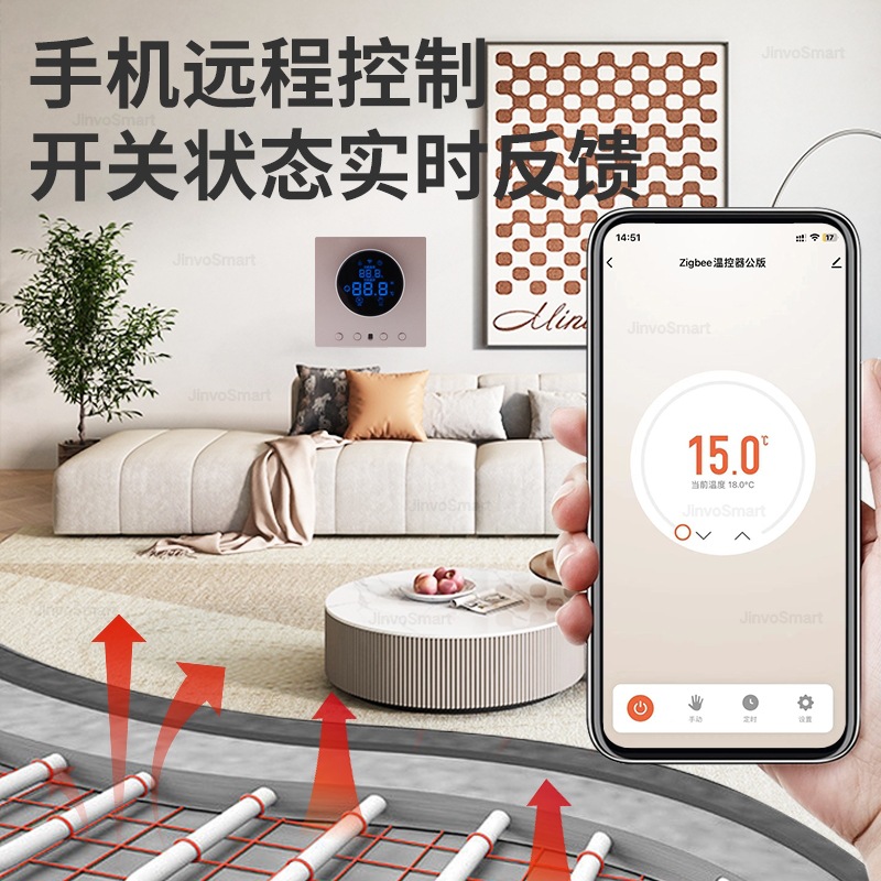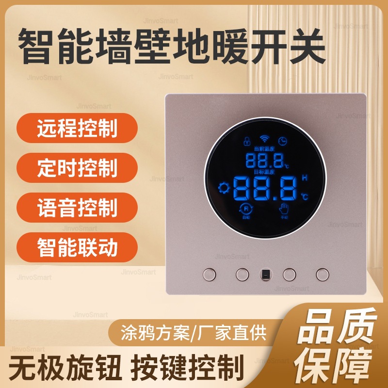 智能地暖水暖开关广泛应用于家庭,酒店,宾馆,民宿,客栈等等场所,取代传统控制开关面板,可以手动操作调温,定时,Y时开关,手机远程遥控开关,定时开关,智能音箱语音控制,支持贴牌订制,印制logo,联排开关按照客户需求订制。智能开关出厂默认中性按键,中性包装,如需印字请咨询客服。