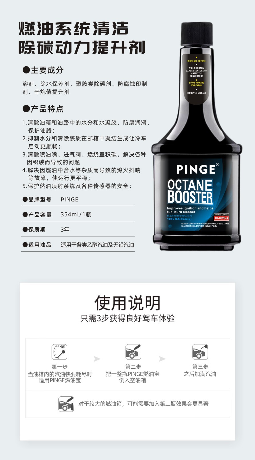 (跨境)辛烷值提升剂汽车油路除积碳清洗剂发动机清洗剂燃油添加 English | 投诉