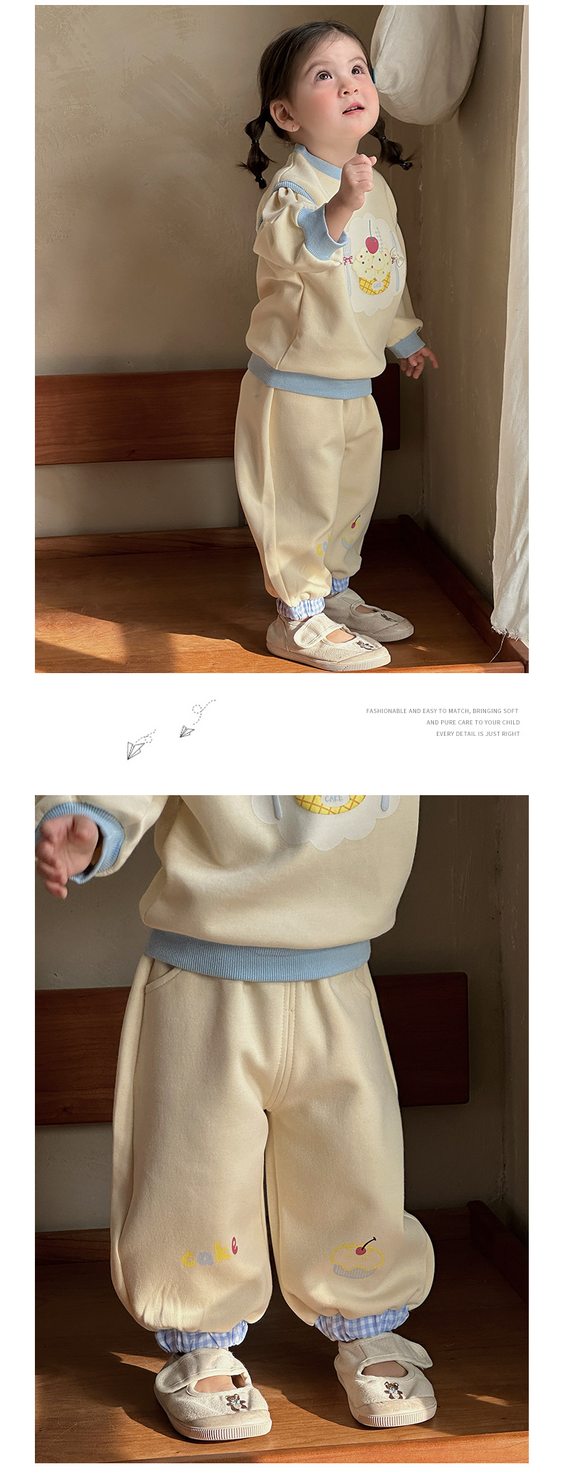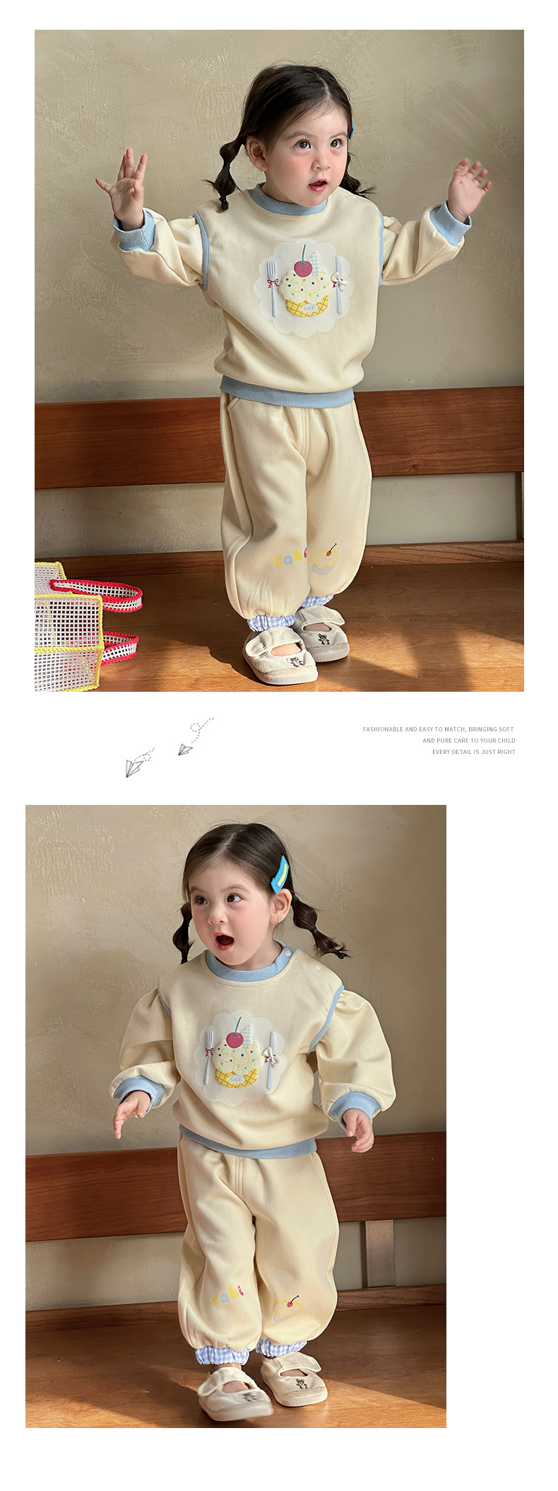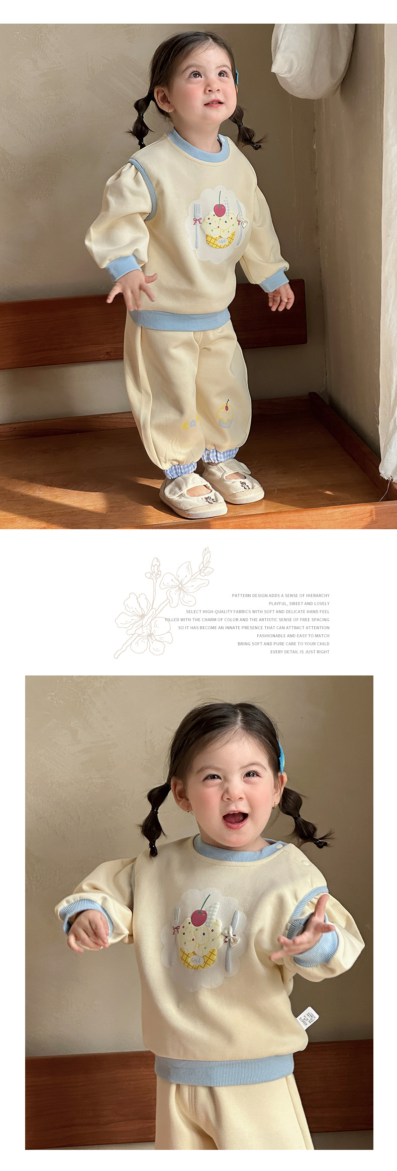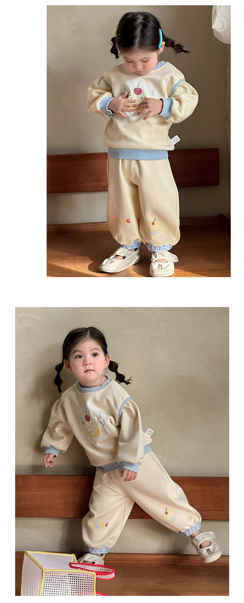 主面料成分: 棉 适合年龄段: 婴幼童(1~3岁,80~100cm) 套装件数: 两件套 品牌: 多呦呦 厚薄: 普通 面料名称: 棉 袖长: 长袖 裤长: 长裤 货号: 626015甜品套装 货源类别: 现货 适用性别: 女 风格: 甜美 套装类型: 裤套装 礼盒内容: 服装 产地: 浙江 适合季节: 春季,秋季 是否连帽: 不连帽 面料工艺: 柔软处理 图案: 卡通 图片实拍: 实拍有模特 重量: 0.5 kg/套