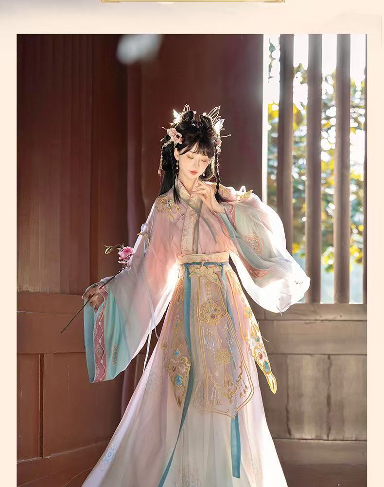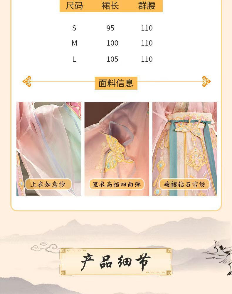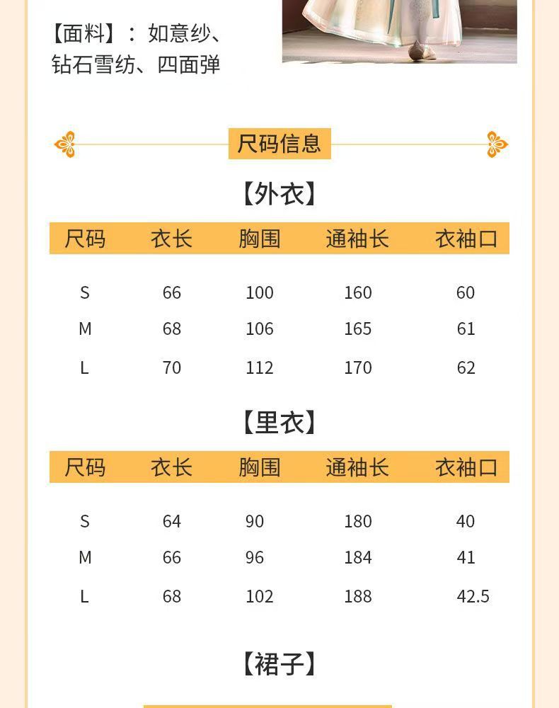 品牌: 其他 上市年份/季节: 2025年夏季 面料名称: 涤纶 主面料成分: 涤纶(聚酯纤维) 主面料成分含量: 90%(不含)-95%(含) 主面料成分2: 涤纶(聚酯纤维) 主面料成分2含量: 90%(不含)-95%(含) 颜色: 【繁花】绣花外衫+里衣+裙子 尺码: S,M,L,XL,2XL 适用季节: 四季 元素: 绣花 印染 渐变 款式: 襦裙 图案: 其它 货号: 202505082357 流行元素: 渐变色 适用性别: 女 袖型: 广袖 制式: 魏晋 朝代: 晋制 工艺: 刺绣/绣花 重量: 0.5 kg/件