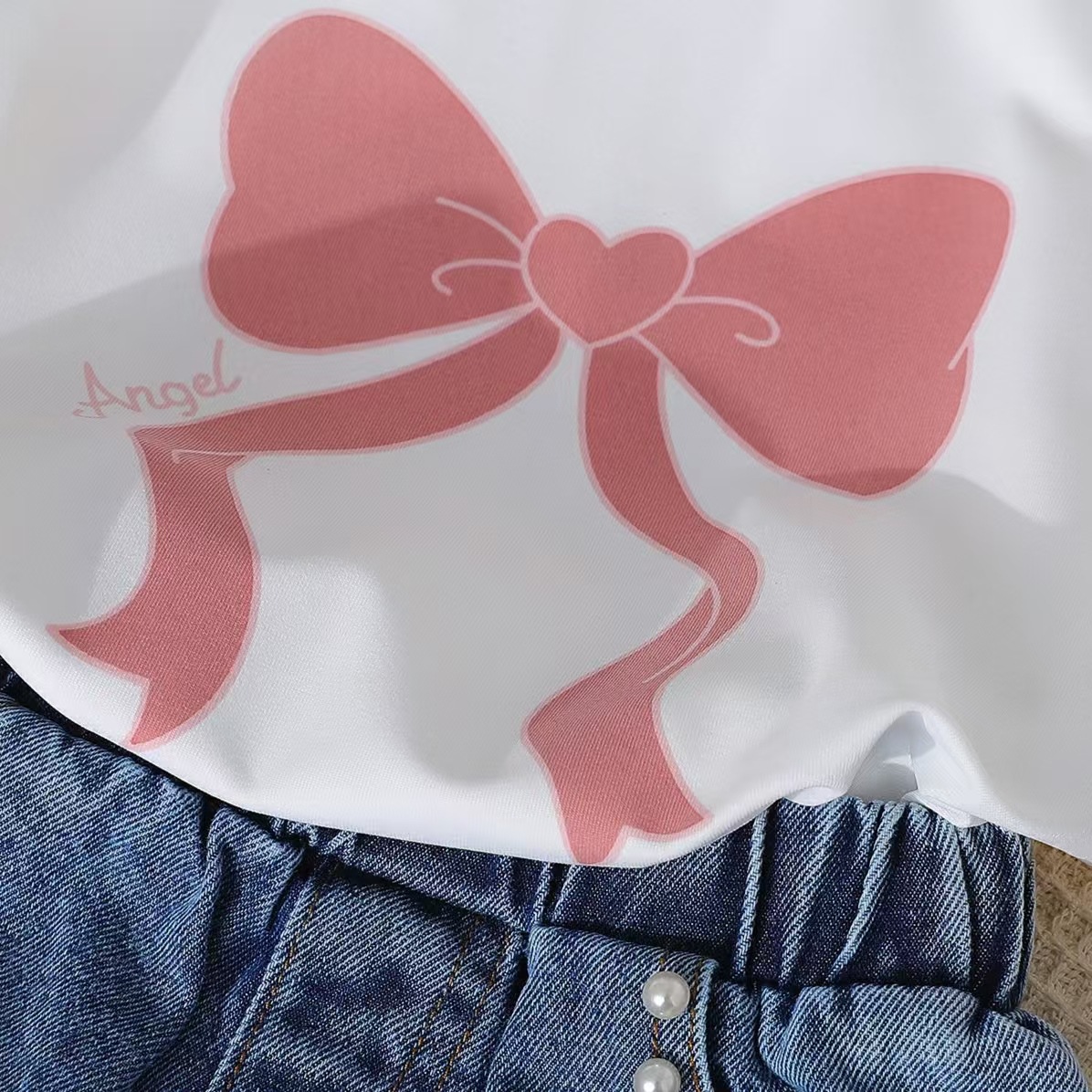 2025新款跨境女童圆领印花针织上衣牛仔珠珠绣花牛仔裤套装两件套 English | 投诉