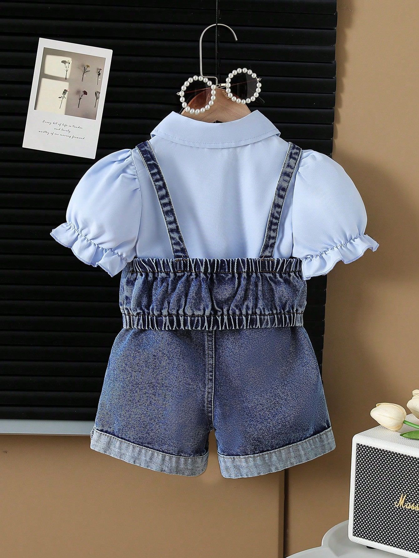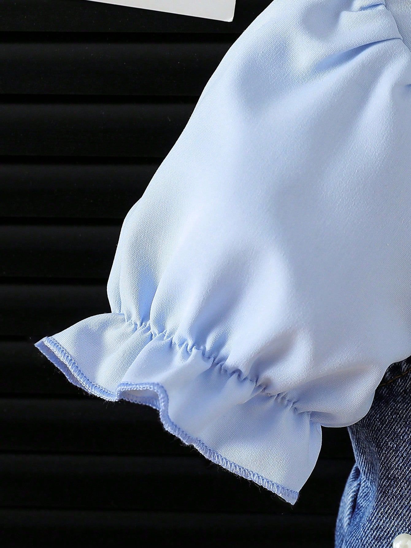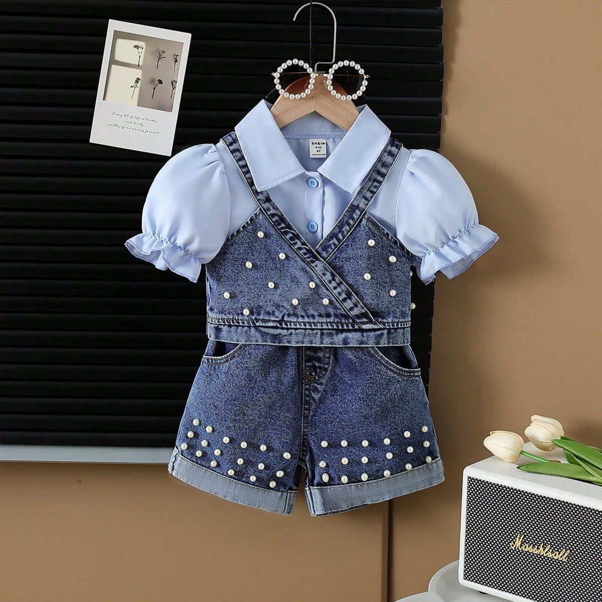 2025新款夏季跨境女童翻领衬衫牛仔马甲珠珠牛仔裤三件套