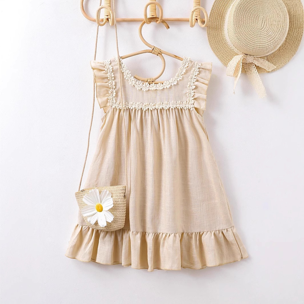 主面料成分: 聚酯纤维(涤纶) 面料名称: 涤纶 款式: 基本款 面料工艺: 磨毛 品牌: 00 元素: 田园 裙类别: 连衣裙 裙摆样式: A字裙 风格: 田园 安全等级: B类 主面料成分含量: 100 产地: 广东 适用性别: 女 适合年龄段: 中小童(3~8岁,100~140cm) 上市年份季节: 2024年夏季 货源类别: 现货 图案: 纯色 货号: 3751 适合季节: 夏季 图片实拍: 实拍无模特 重量: 0.5 kg/套